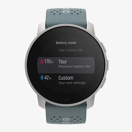 De batterij van de 9 Peak is voorzien van een aantal handige standen. Wanneer het horloge alleen gebruikt wordt voor de tijd, gaat het horloge 14 dagen mee. Zodra het horloge overschakelt op de trainingsmodus, gelden er verschillende tijden van accuduur. Zo gaat het horloge 25 uur mee op Performance, 50 uur mee met Endurance en 170 uur in Tour mode.