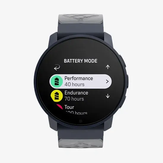 Supersterke batterijDe batterij van de 9 Peak Pro is misschien wel de beste op de markt op het moment. De batterij is namelijk voorzien van een aantal handige standen. Wanneer het horloge alleen gebruikt wordt voor de tijd, gaat het horloge 14 dagen mee. Zodra het horloge overschakelt op de trainingsmodus, gelden er verschillende tijden van accuduur. Zo gaat het horloge 40 uur mee op Performance, 70 uur mee met Endurance en 300 uur in Tour mode.