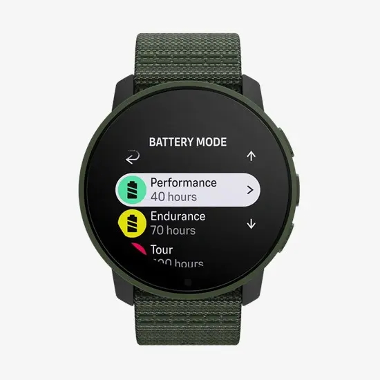 Supersterke batterijDe batterij van de 9 Peak Pro is misschien wel de beste op de markt op het moment. De batterij is namelijk voorzien van een aantal handige standen. Wanneer het horloge alleen gebruikt wordt voor de tijd, gaat het horloge 14 dagen mee. Zodra het horloge overschakelt op de trainingsmodus, gelden er verschillende tijden van accuduur. Zo gaat het horloge 40 uur mee op Performance, 70 uur mee met Endurance en 300 uur in Tour mode.