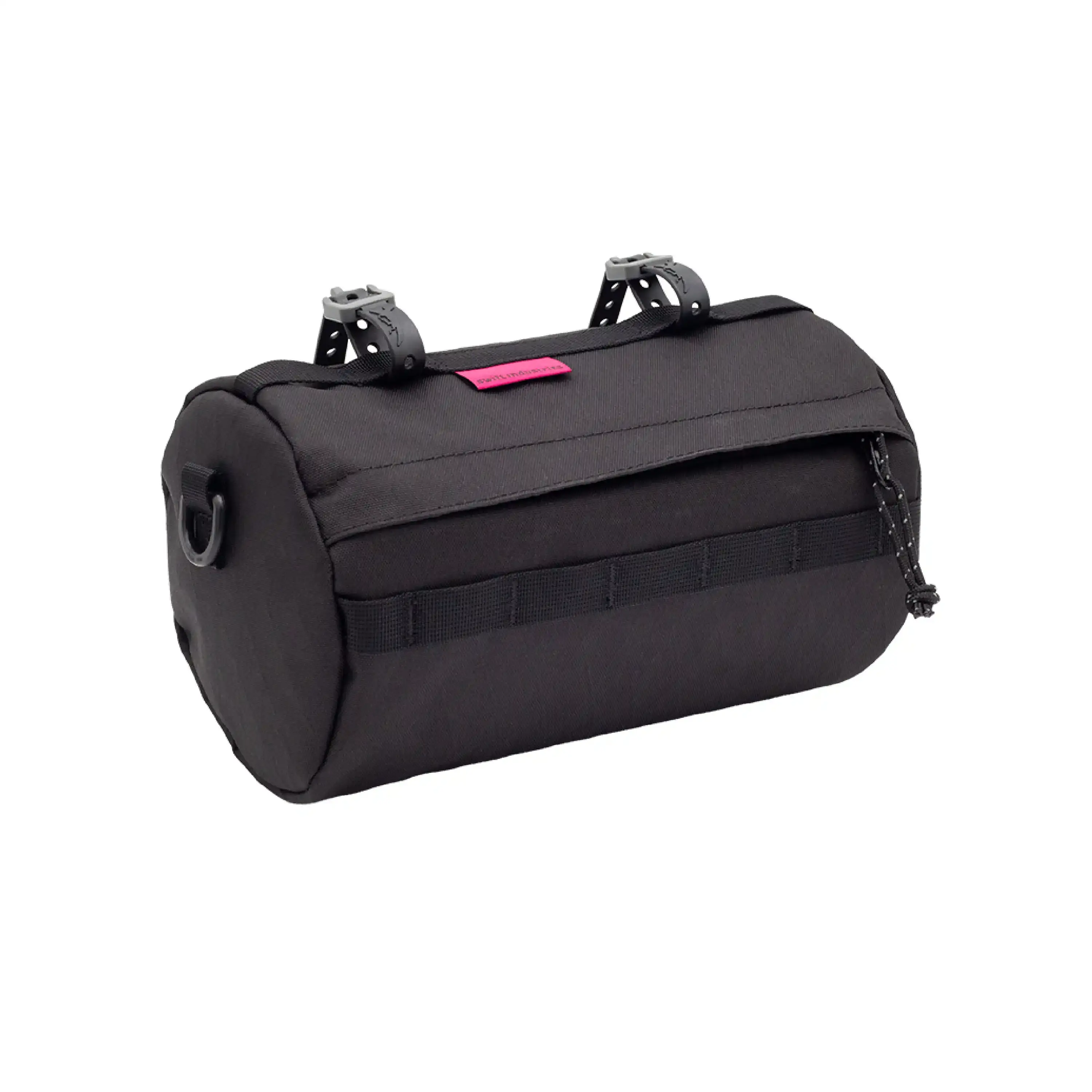 - Bevestiging aan het stuur: Voer de twee meegeleverde Swift Straps door de lussen in de webbing die het dichtst bij de buitenranden van de tas zitten en bevestig deze direct aan je stuur.