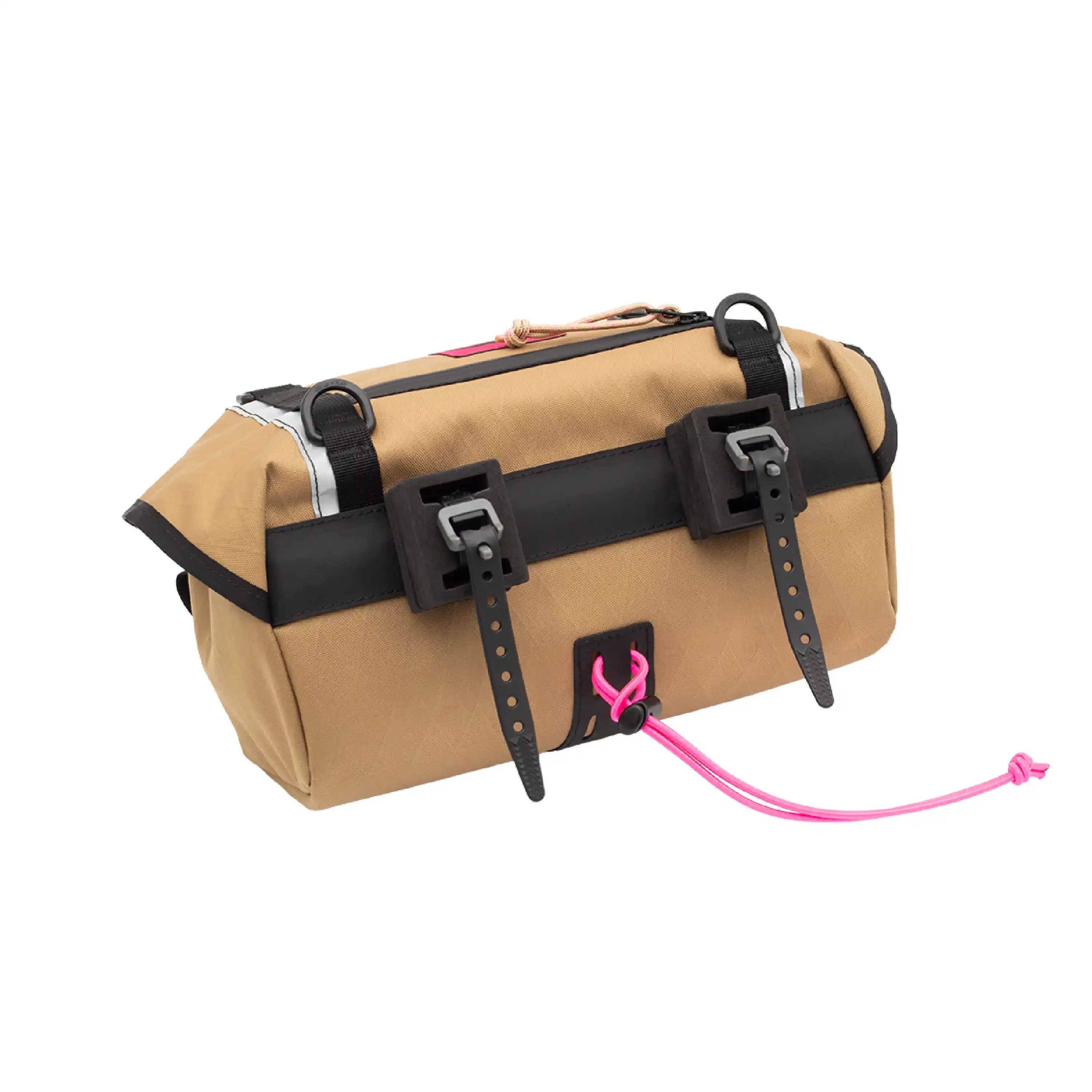 De Swift Industries Catalyst Pack is een schitterende tas met een gemiddelde capaciteit die zowel aan het stuur als aan het zadel gemonteerd kan worden. Als compacter alternatief voor de bekende Zeitgeist Pack, is de Catalyst door zijn slanke profiel uitermate geschikt voor fietsen met minder ruimte boven het wiel of voor smallere drop bars. Dankzij de semi-rigide voering behoudt de tas altijd zijn vorm, terwijl de interne compressieriem en trekkoordsluiting ervoor zorgen dat je bepakking strak op zijn plek blijft zitten zonder te gaan schommelen. Of je nu een dag gaat gravelen of een lichtgewicht bikepacking-trip maakt, de Catalyst is een rotsvaste toevoeging aan je uitrusting.