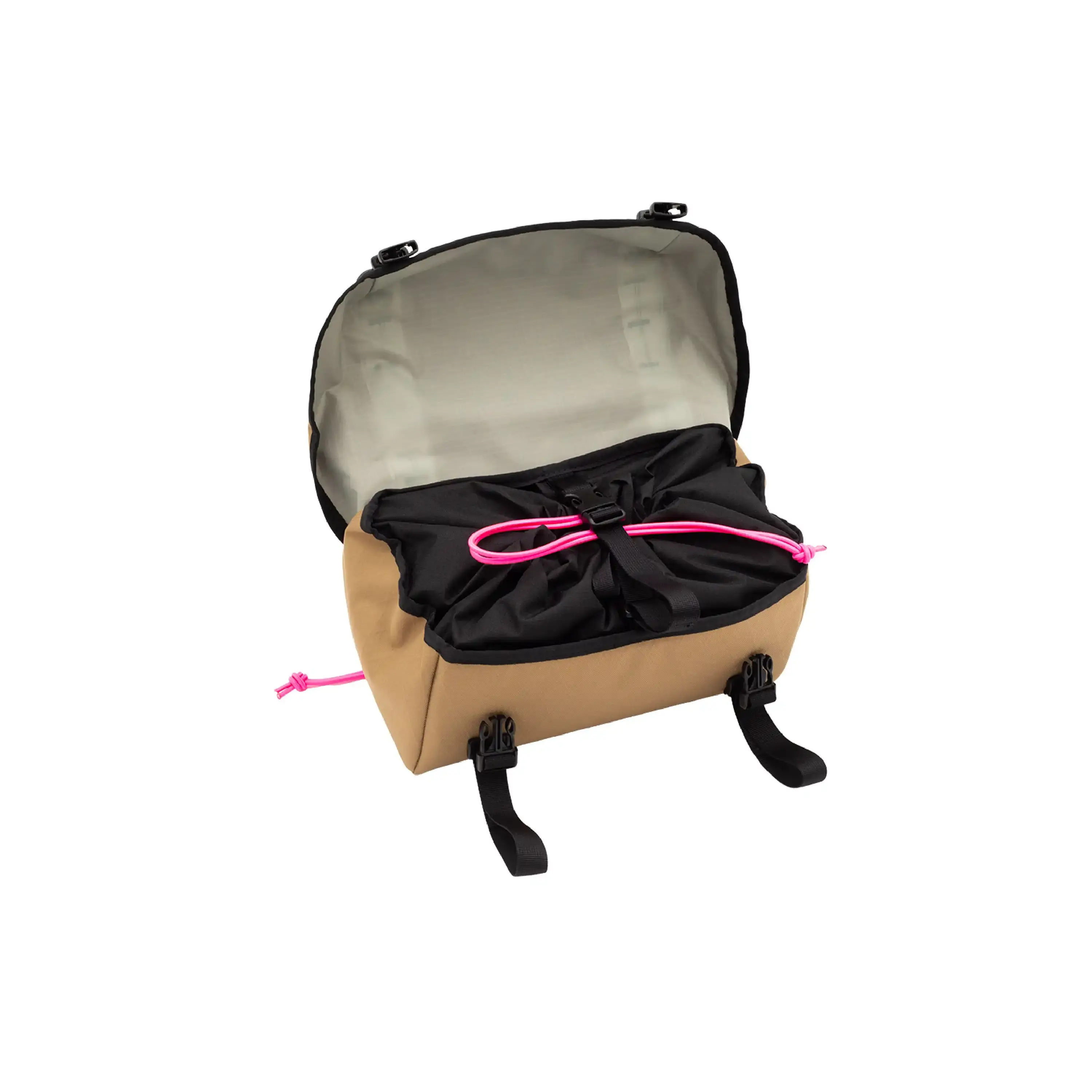 • Hoogte (Clearance): Je hebt minimaal 25,5 cm ruimte nodig tussen je stuur (of zadelrails) en de bovenkant van je band om de tas zonder drager te gebruiken.