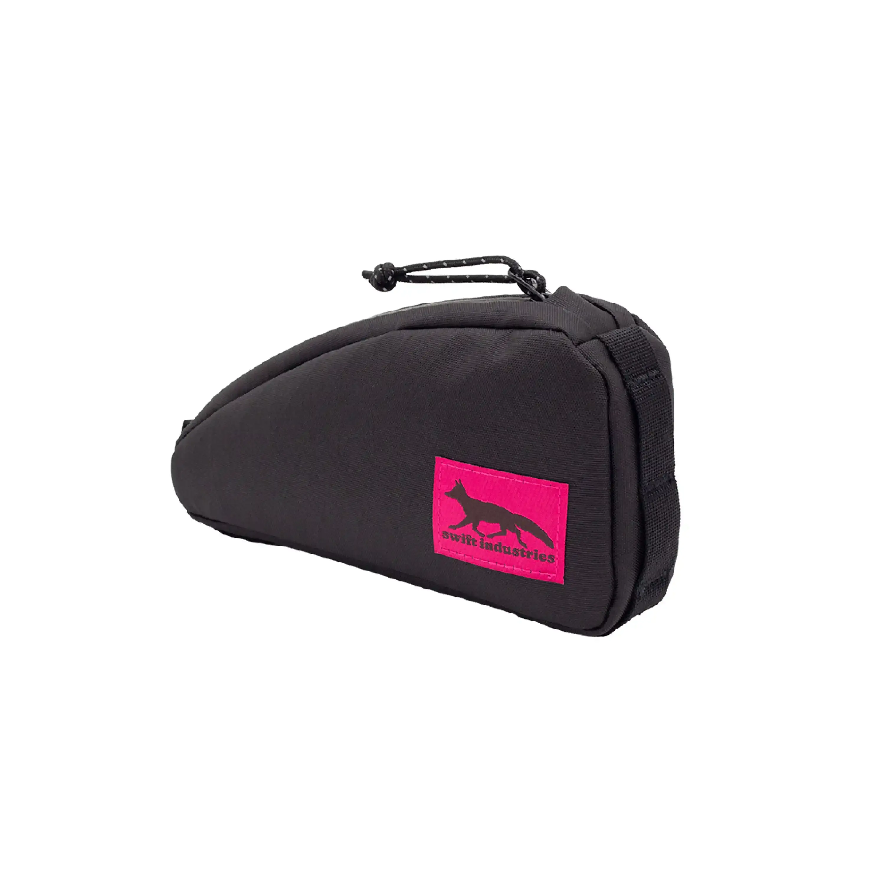 De Swift Industries Moxie Top Tube Bag is de ideale metgezel voor elk fietsavontuur. Deze compacte maar uiterst praktische tas past perfect in de hoek tussen je stuurpen en de bovenbuis van je frame. Dankzij het slimme ontwerp heb je met één hand direct toegang tot al je benodigdheden die je onderweg nodig hebt, zoals snacks, je telefoon of een reparatiesetje. De tas is voorzien van een verstevigende schuimvulling die niet alleen zorgt voor een strakke vorm, maar ook de inhoud beschermt tegen trillingen en schokken tijdens het rijden op ruwer terrein.