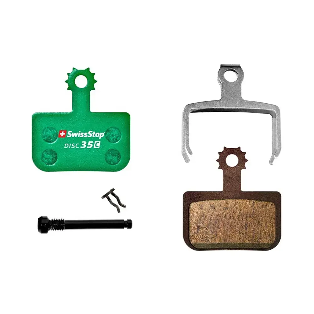 De Swissstop Disc 35 C schijfremblokken zijn ontworpen voor optimale remprestaties op race- en gravelbikes. Dankzij de geavanceerde organische compound leveren deze blokken uitstekende remkracht en modulatie in alle weersomstandigheden. Ze zijn compatibel met SRAM Red AXS, Force en Rival schijfremsystemen. De set wordt geleverd met twee remblokken en een veer, wat installatie eenvoudig en probleemloos maakt.