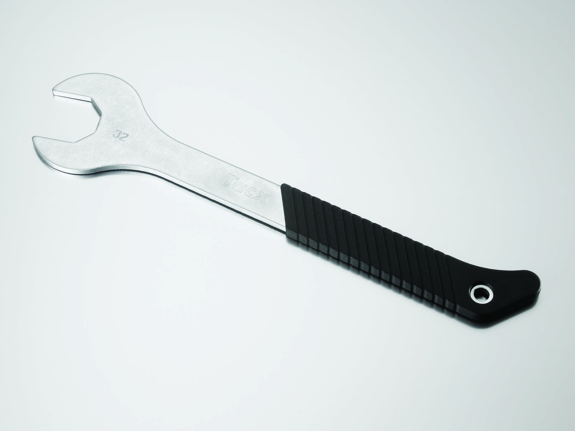 Balhoofdsleutel van Tacx, verkrijgbaar in de maten 32 mm, 36 mm en 40 mm. Met deze sleutel kunt u makkelijk de bovenste balhoofdmoer afstellen. Hiervoor is naast deze balhoofd sleutel geen extra gereedschap nodig. Tacx heeft deze balhoofdsleutel degelijk uitgevoerd met een ergonomische handgrip en een handig ophang haakje.
