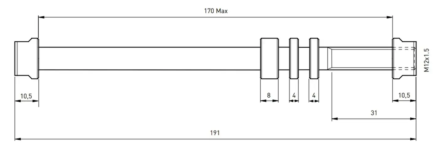 170 Max staat voor de lengte van de achteras en M12x1.5 voor de breedte in millimeters (12) en de schroefdraad in millimeters (1.5).