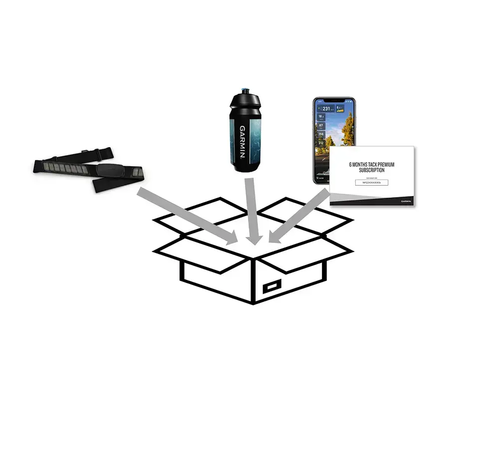 Geleverd met GRATIS accessoire box met Garmin HRM hartslagmeter, 1 maand Tacx Premium & een bidon t.w.v. 130 euro!