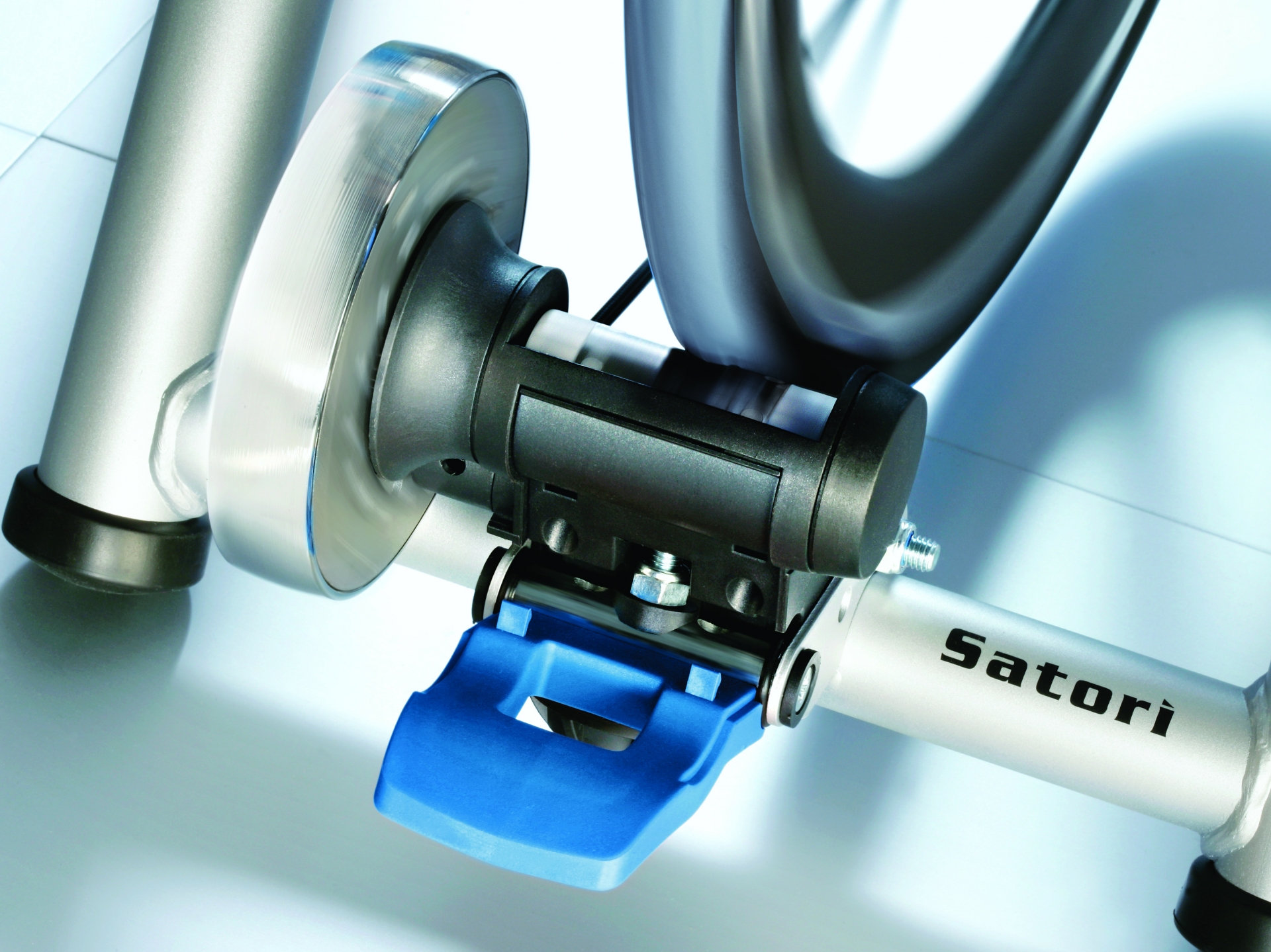 De Tacx Satori is de super kracht trainer van de Pro Tour teams. Het stoere, ergonomische frame staat rotsvast op de grond. De rem bestaat uit een zeer krachtige Neodynium magneet en een extra groot stalen vliegwiel. Met de 10-standen stuur versteller kunt u de weerstand instellen naar wens. Daarbij dient de positie van de magneet ten opzichte van het vliegwiel geplaatst te worden. Hierdoor ontstaat een magnetisch veld dat trainen op hoge vermogens met lage trapfrequenties mogelijk maakt. De Tacx Satori beschikt NIET over een stuurcomputer waarop gegevens te zien zijn.