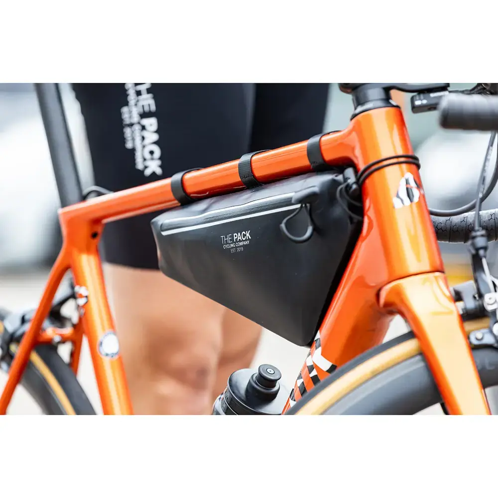 Bij lange ritten of op fietsvakanties is de kans op een bui altijd aanwezig. Als je dan spullen bij je hebt die je droog wilt houden, dan is de AWG frametas van The Pack een goede oplossing. Hij is gemaakt van waterdichte materialen en getapete naden, zodat alles droog en schoon blijft. De tas bevat een groot compartiment met ritssluiting, een vak met een klittebandsluiting en een sleutelring.De inhoud van 2 Liter biedt ruimte aan bijvoorbeeld fietsgereedschap, snacks, een telefoon en een portemonnee. Dankzij de klitteband riempjes en het elastische koord zit de tas stevig aan de fiets. Dankzij de afmetingen past de tas op bijna elke fiets. De buitenkant van de tas is gemaakt van materiaal dat makkelijk schoon te maken is. Je spullen zijn goed beschermt tegen de weersomstandigheden met deze AWG frametas van The Pack.