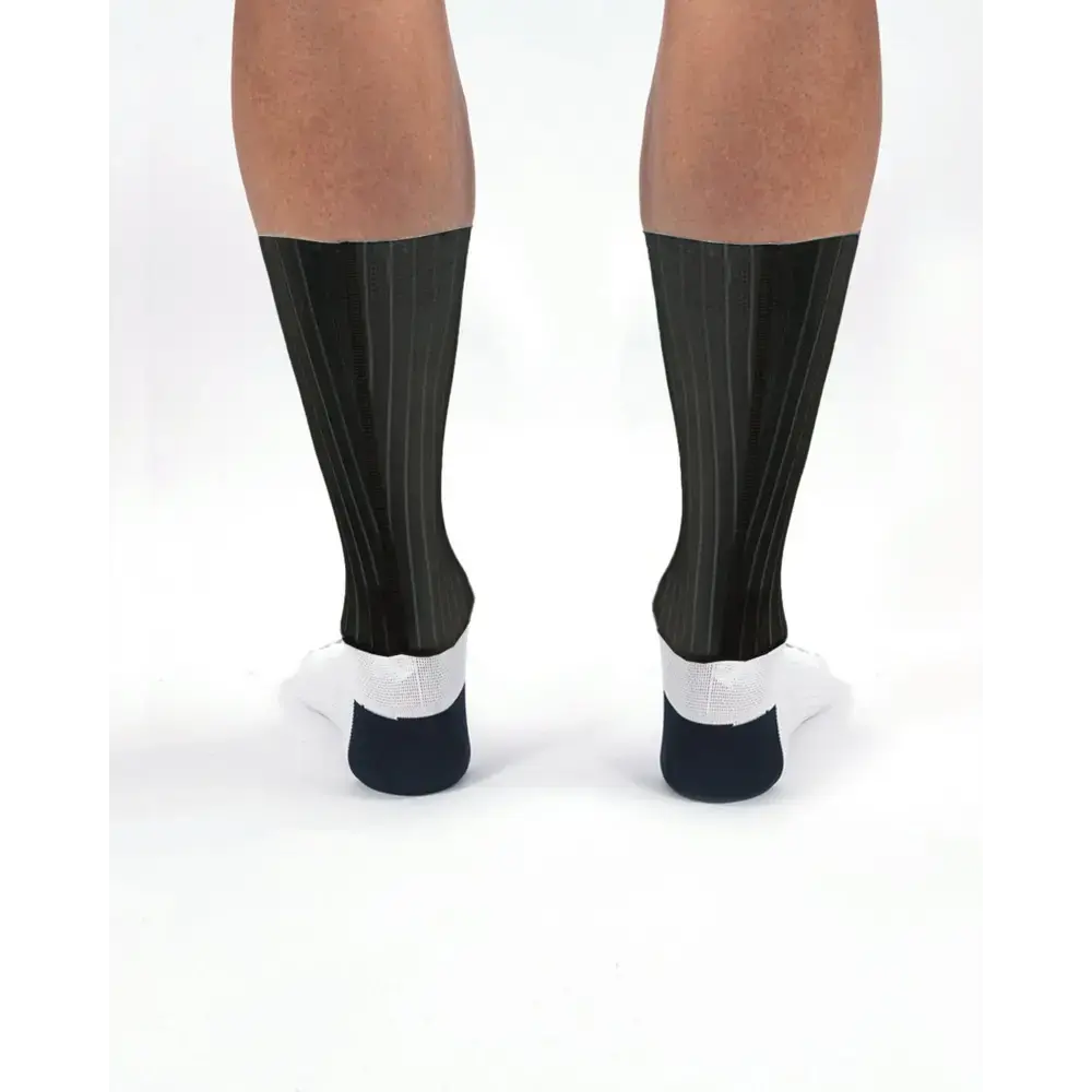 Het draait allemaal om de marginal gains. Na uitgebreid testen en finetunen presenteert The Vandal met trots de VCC Aero Fietssokken, ontwikkeld om je net dat beetje sneller te maken wanneer elke seconde telt. De aerodynamische schacht is ontworpen om de luchtweerstand te verminderen en je efficiëntie op hoge snelheid te verbeteren. Of je nu voluit gaat op het vlakke of alles geeft in een wedstrijd, deze sokken helpen je het maximale uit je inspanning te halen. Dankzij de hoogwaardige siliconen grippers blijven de sokken perfect op hun plaats, hoe intens of lang je rit ook is. Geen afzakkende sokken, alleen een stabiel en comfortabel gevoel van start tot finish. De Aero Sokken zijn de ultieme upgrade voor renners die niets aan het toeval overlaten.