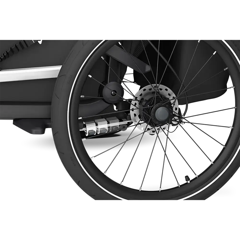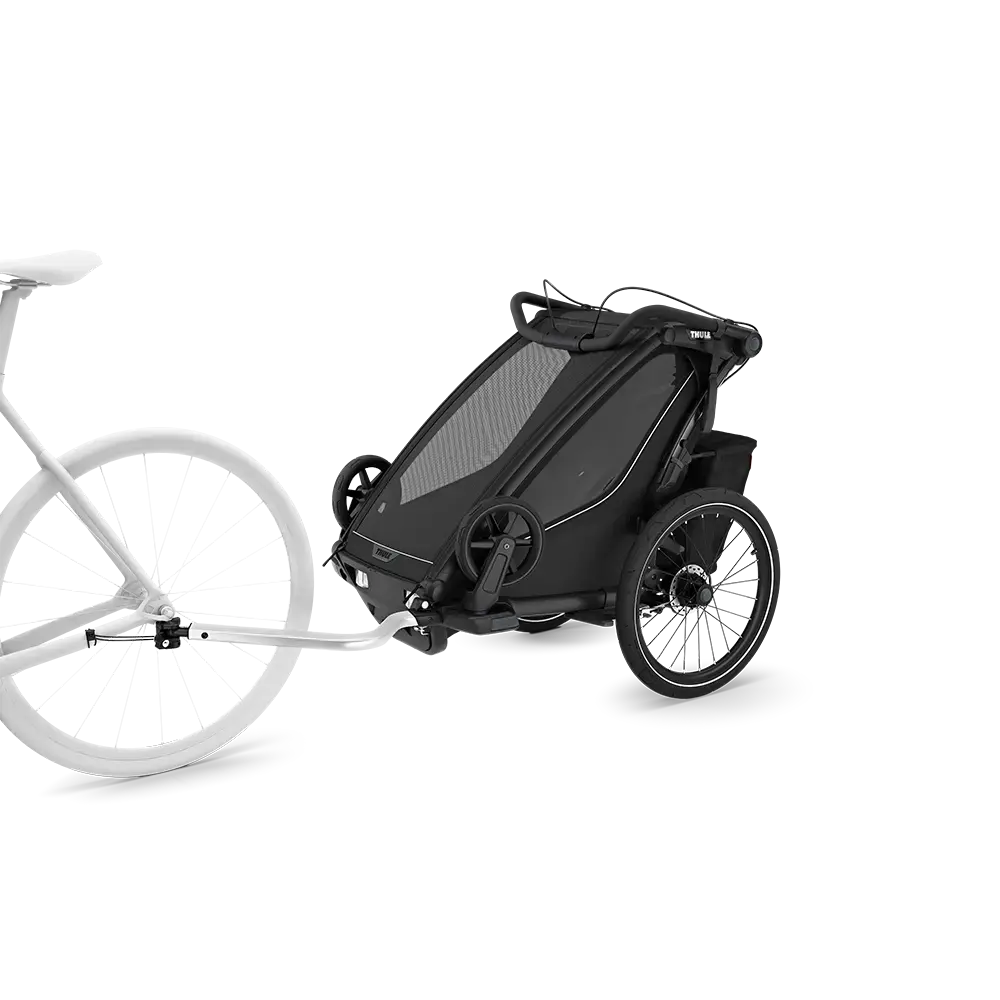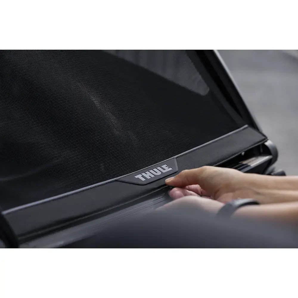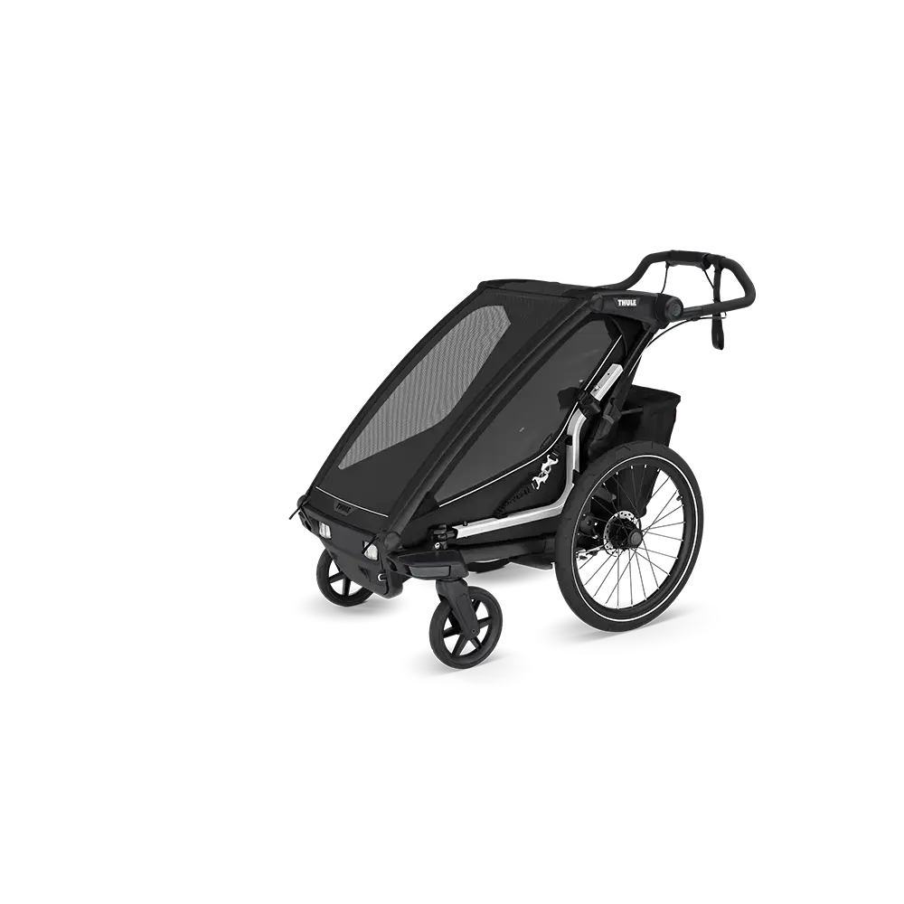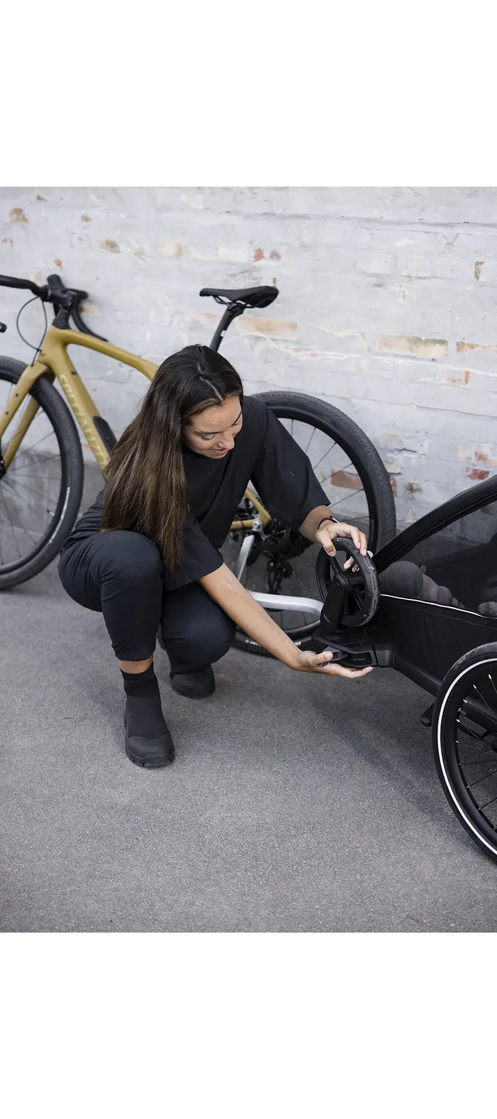 De Thule Chariot Sport 1 G3 fietskar is ideaal wanneer je je kind overal mee naartoe wilt nemen. Deze kar is gemaakt van lichtgewicht materiaal en weegt hierdoor slechts 18.3 kilogram. De kar is volledig opvouwbaar en wordt hierdoor erg compact zodat je hem ook bijvoorbeeld achterin de auto op kan bergen. De kar heeft twee grote achterwielen en kleine zwenkwielen aan de voorzijde. Hierdoor ben je super wendbaar. De zwenkwielen kan je gemakkelijk omdraaien wanneer je met de kar gaat fietsen. Dit is onderdeel van het FlipWing systeem waarmee je supergemakkelijk de kar gereed kunt maken voor een andere activiteit. Zo kan je bijvoorbeeld ook de trekhaakarm met slechts één arm aan je fiets monteren. De duwstang is verstelbaar waardoor groot en klein de stang op de juiste hoogte hebben zitten en comfortabel kunnen lopen. Daarnaast is ook de vering verstelbaar, zodat je rijcomfort kunt aanpassen naarmate je kind groter wordt. Dankzij het geïntegreerde achterlicht over de gehele achterzijde ben je altijd optimaal zichtbaar. De hand geactiveerde schijfremmen zorgen ervoor dat je altijd controle houdt over de kar. Ook op steil terrein of tijdens het hardlopen. Dankzij de grote bagagemand aan de achterzijde kan je zeer veel spullen meenemen. Ga je hardlopen? Dan klap je deze mand gemakkelijk weer in. Het klimaat binnenin kan je perfect regelen dankzij de ventilatieopeningen, afneembare zijramen en nog veel meer. Al het materiaal dat gebruikt wordt is uiteraard PFAS-vrij voor een lagere impact op het milieu. Zoals het Thule betaamt worden de fietskarren uitermate goed getest op veiligheid en worden de normen ruimschoots overtroffen.