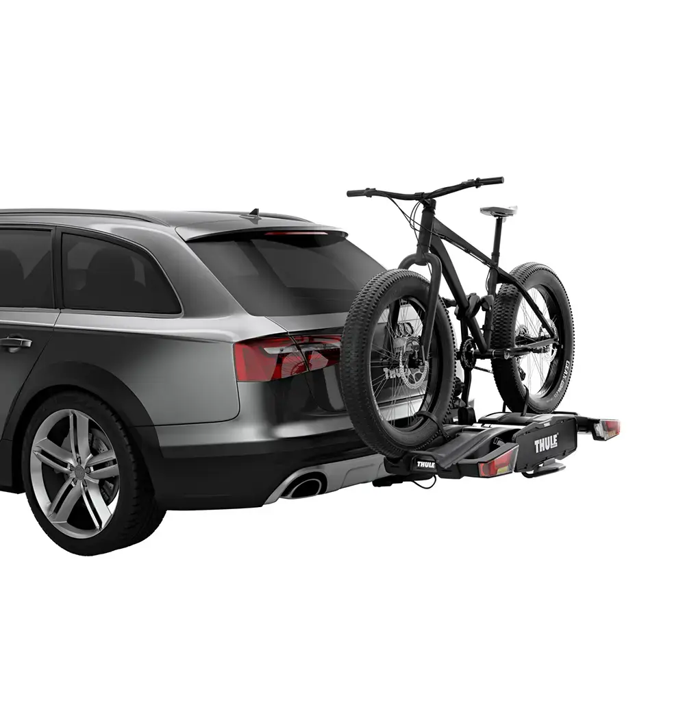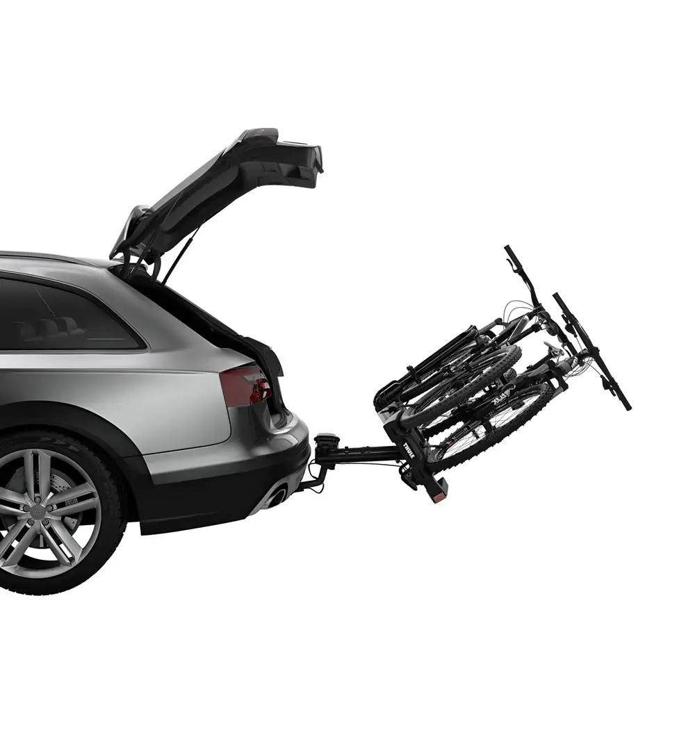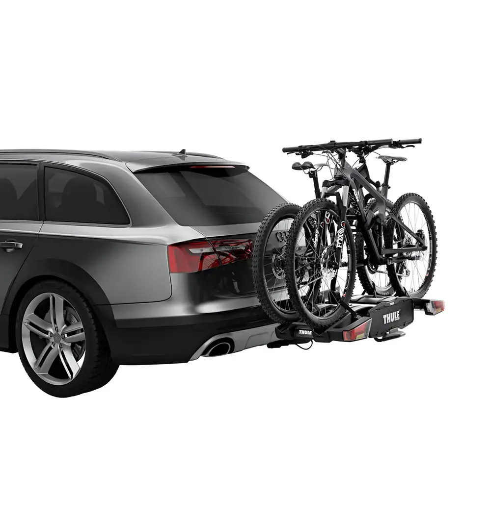 De Thule EasyFold XT Fietsendrager is een super compacte fietsendrager die geheel opvouwbaar is. De fietsendrager is eenvoudig op de trekhaak te bevestigen en door middel van een hendel over te halen zit hij direct vast. De fietsendrager heeft een erg hoog laadvermogen van wel 60 kilogram, perfect dus om twee elektrische fietsen op mee te nemen. De drager is kantelbaar waardoor je gewoon toegang hebt tot je kofferbak. Heb je de drager even niet nodig, dan vouw je hem op en is hij erg compact zodat je hem eenvoudig weg zet.