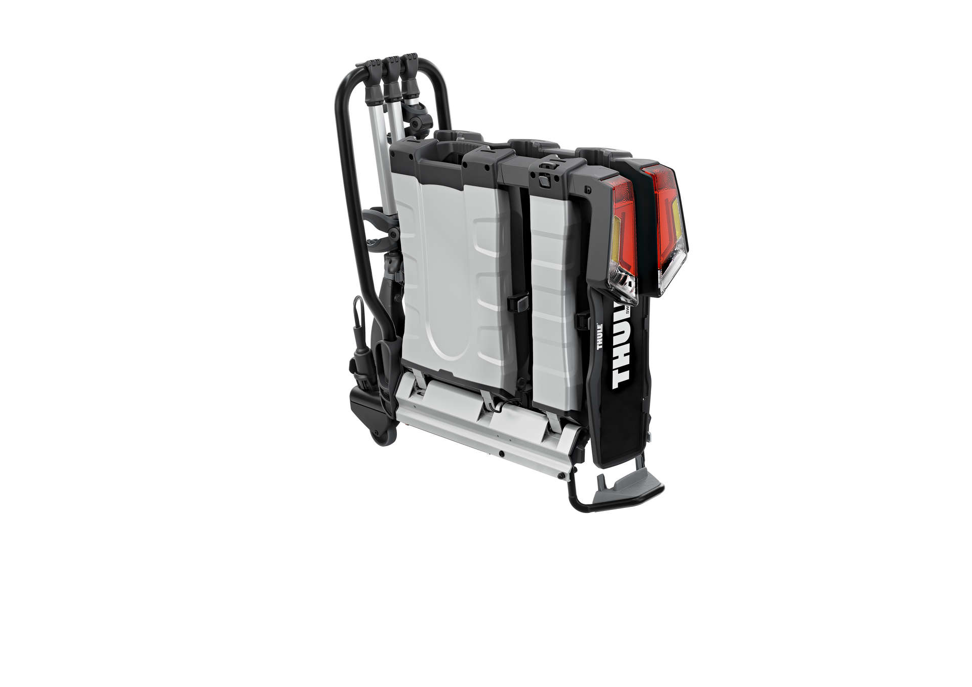De Thule EasyFold XT Fietsendrager is een super compacte fietsendrager die geheel opvouwbaar is. De fietsendrager is eenvoudig op de trekhaak te bevestigen en door middel van een hendel over te halen zit hij direct vast. De fietsendrager heeft een erg hoog laadvermogen van wel 60 kilogram, perfect dus om twee elektrische fietsen op mee te nemen. De drager is kantelbaar waardoor je gewoon toegang hebt tot je kofferbak. Heb je de drager even niet nodig, dan vouw je hem op en is hij erg compact zodat je hem eenvoudig weg zet.
