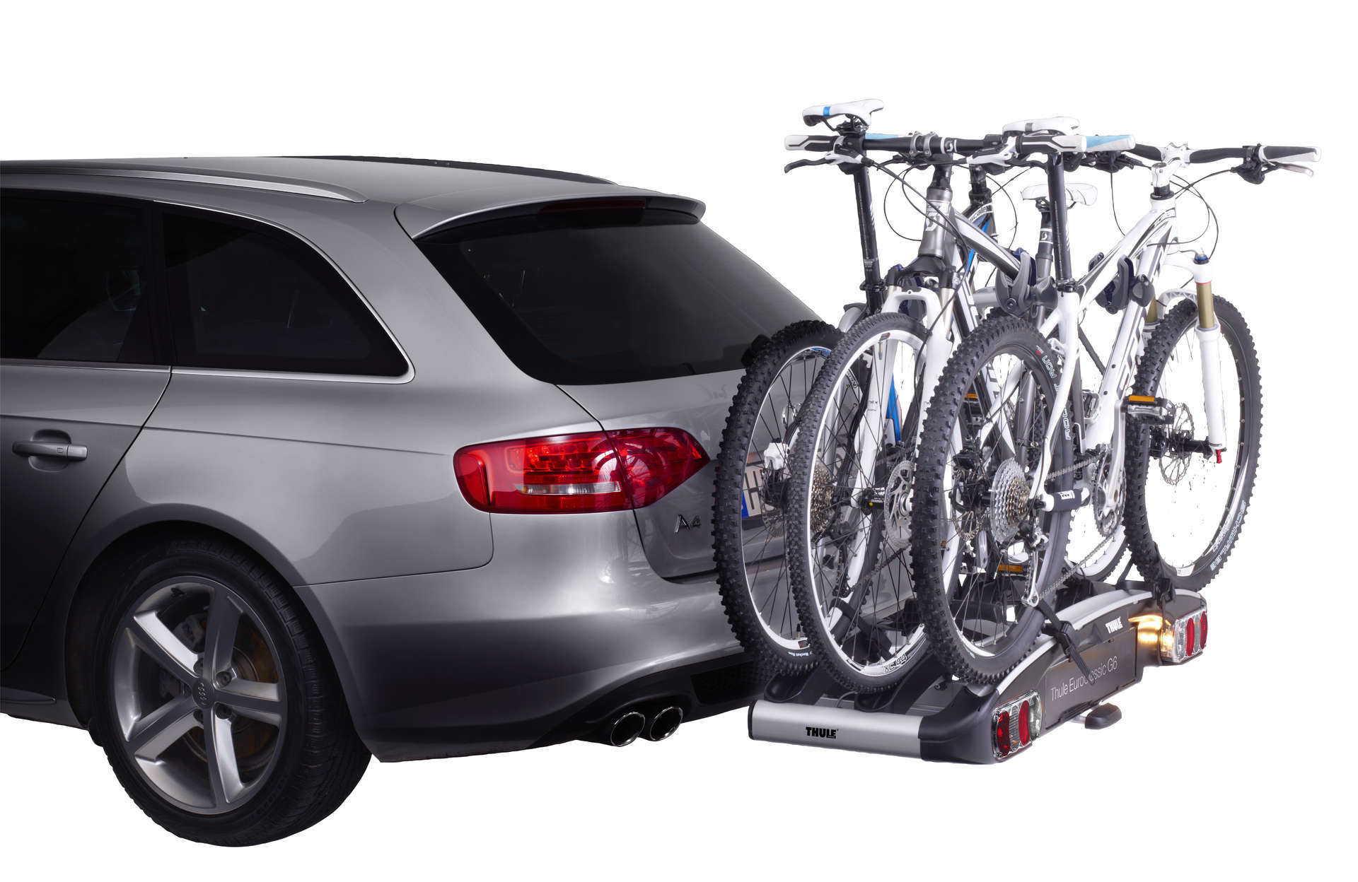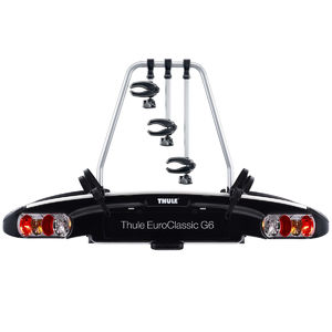 Deze EuroClassic G6 fietsendrager van Thule is absoluut van topklasse. De drager biedt ruimte aan 3 fietsen en is zelfs uit te bereiden voor een vierde fiets. Het grote laadvermogen van 25 kg per fiets maakt het mogelijk ook de lichtere E-bikes te vervoeren. De framehouders zijn voorzien van de Thule AcuTight knop ter bescherming van het frame en zijn afneembaar waardoor fietsen gemakkelijk te plaatsen zijn. Door de zeer ruime kantelhoek is ook het openen van de grotere achterdeuren mogelijk.
