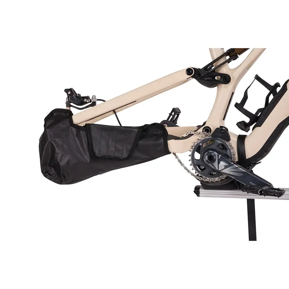 De Thule RoundTrip MTB Bike Travel Case heeft een speciaal ontworpen interieur om de fiets stevig vast te zetten, zodat alles veilig op zijn plaats blijft, zelfs na een grondige veiligheidscontrole. De binnenkant is voorzien van opbergruimte voor je ketting, frame en remschijven, zodat ze beschermd zijn tegen schade tijdens het transport. Dankzij de opvouwbare zijpanelen kan de fietskoffer compact worden opgeslagen, zelfs op je reisbestemming. De draaiwiel aan de voorkant maakt het gemakkelijk om de koffer door luchthavens te manoeuvreren, en de regenhoes biedt extra bescherming tegen slecht weer.