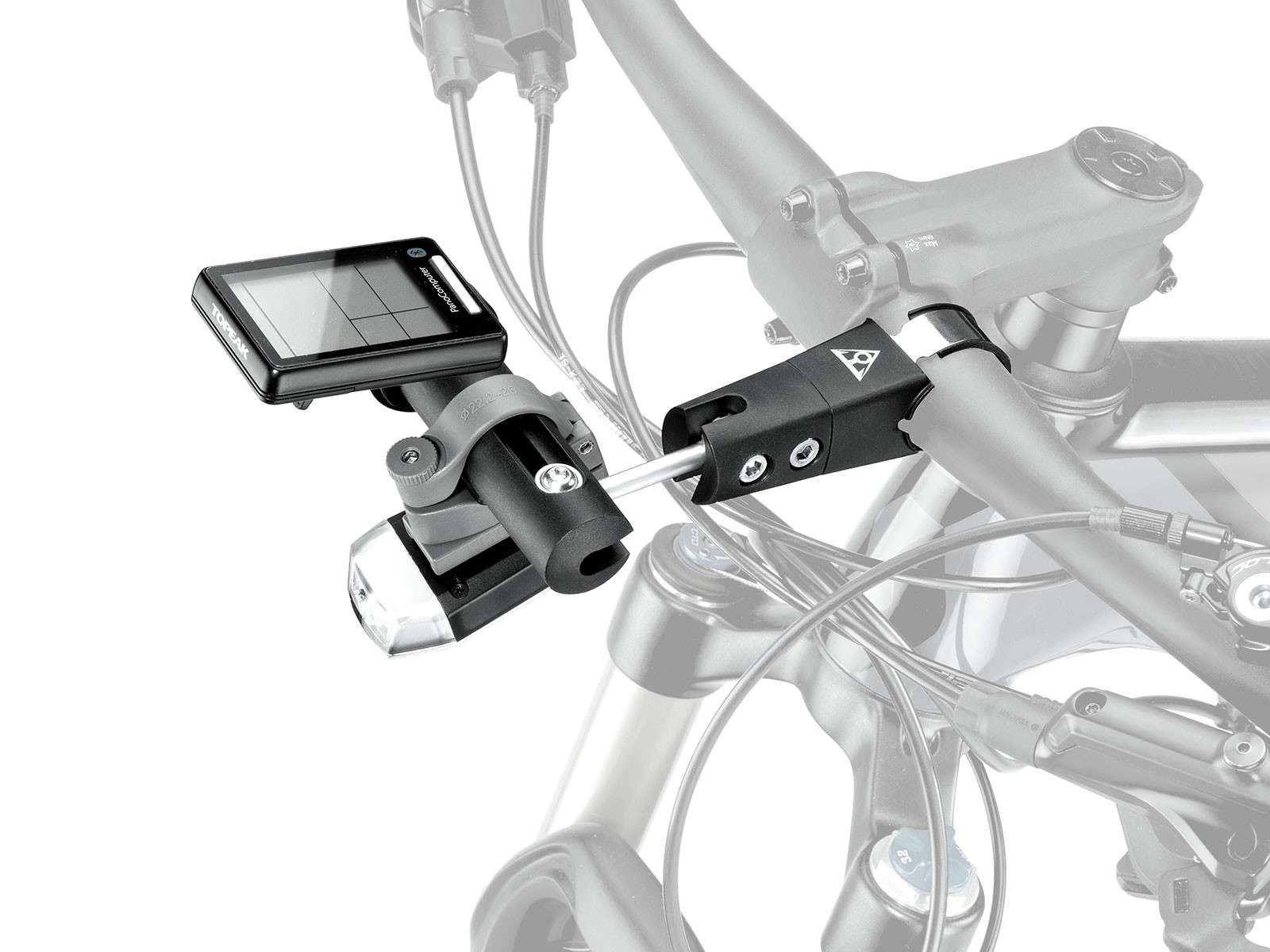 De Topeak BarX`Tender is een multifunctionele mount voor op je stuur. Je kunt hem gebruiken als out front steun voor je fietscomputer, zodat je het scherm extra goed kunt aflezen. Maar hij is ook onder je stuurpen te monteren om je koplampen extra laag te hangen voor beter zicht. Hij is eenvoudig te bevestigen aan zowel je stuurpen als je stuur. De draagcapaciteit van maximaal 300 gram zorgt ervoor dat je vrijwel alle accessoires zorgeloos kunt ophangen. Ze blijven stevig zitten, ook tijdens je ruigere cross country rit.