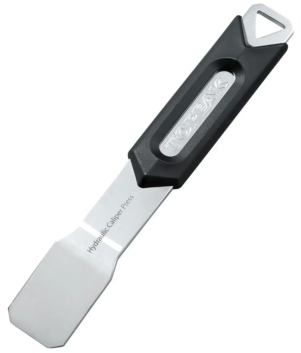 Deze Topeak Schijfrem Remblokspreider moet je in je gereedschapskoffer hebben liggen als je een fiets met schijfremmen hebt. De conisch gevormde punt van het gereedschap is ontworpen om tussen de remblokken in de remklauw te glijden en de remblokken te spreiden door de zuigers terug in de remklauw te duwen. Het gereedschap is onder een hoek gebogen voor gemakkelijkere toegang tot de remklauw en heeft een dubbel gebogen handgreep voor meer comfort.