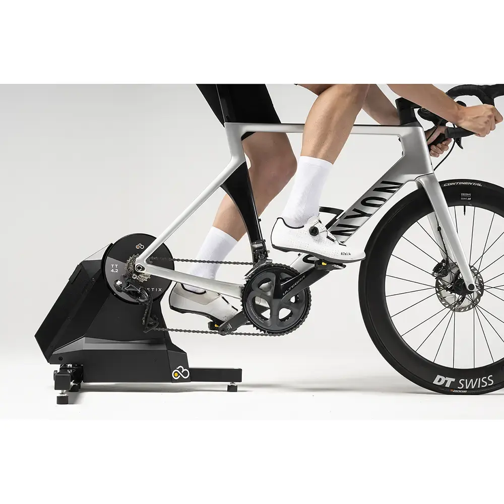 De TrueTrainer van TrueKinetix is een opvallende trainer tussen de vele anderen. Dat start al bij deze 4.2-versie die de voortuitstrevende techniek beschikbaar maakt tegen een interessante prijs. De TrueTrainer heeft de TrueForce technologie. Een revolutionaire op robotica gebaseerde aandrijving waardoor het binnen fietsen lijkt op buitenfietsen. Deze techniek kenden wel al van de TrueBikes en is een alternatief op een traditioneel vliegwiel. De weerstand wordt helemaal digitaal gegenereerd via robotica en een sterke motor, waardoor de trainer geen restricties heeft die worden bepaald door het gewicht van een vliegwiel. Hierdoor kun je effectiever trainen en bouw je meer spiermassa op tijdens je training en hou je het langer vol! Door het ontbreken van een vliegwiel weegt de trainer slechts 15kg, hij is dus makkelijk te verplaatsen. Daarnaast kan de trainer lichtjes heen en weer bewegen, wat het realistische weggevoel alleen maar versterkt en waardoor je een training langer volhoudt.