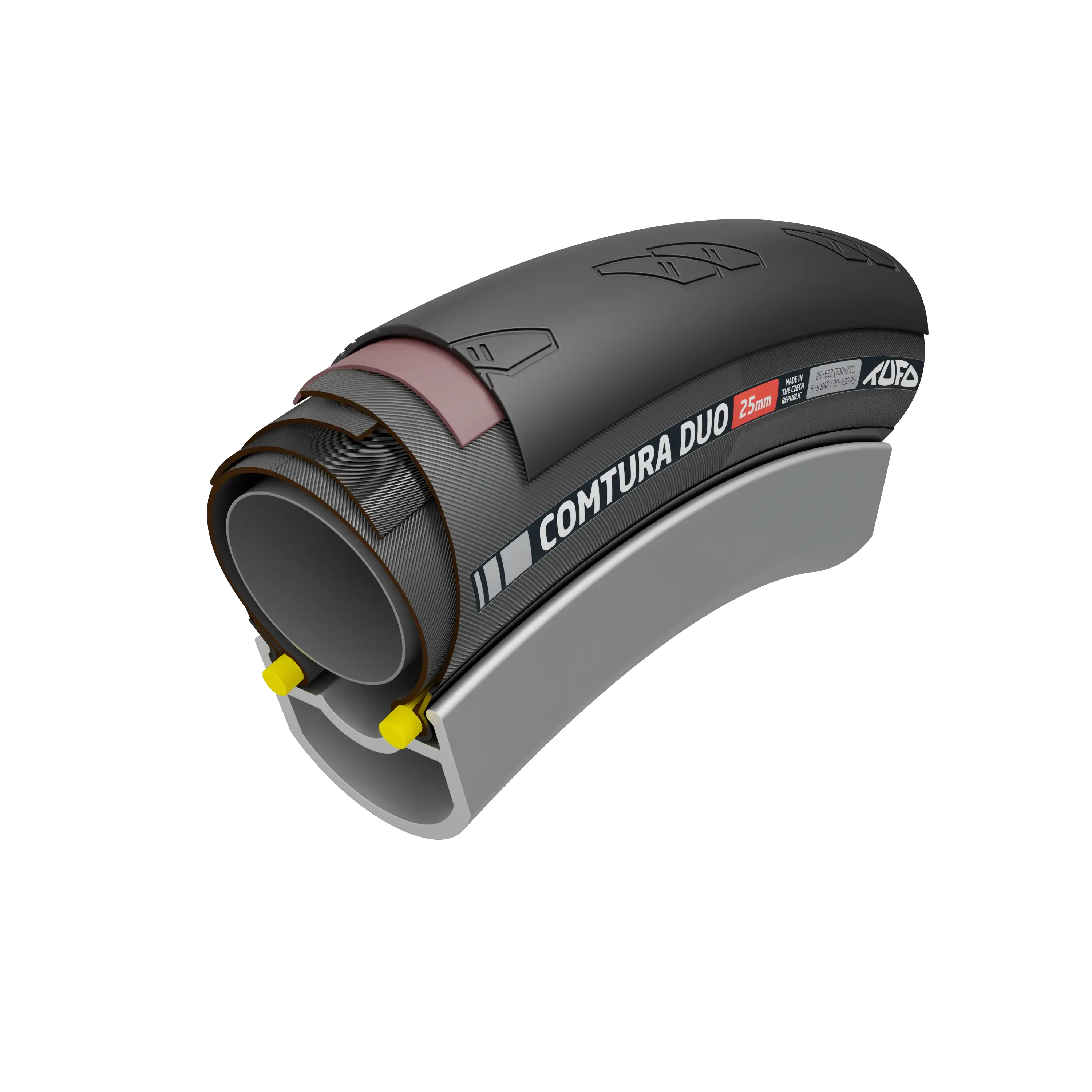 De TUFO Comtura Duo is een veelzijdige band, die is ontworpen voor wielrenners die het beste van twee werelden willen: topprestaties op de racefiets én onovertroffen bescherming tegen lekkages en slijtage. Of je nu traint voor je volgende wedstrijd of geniet van een lange rit, de Comtura Duo zorgt ervoor dat je altijd optimaal presteert.