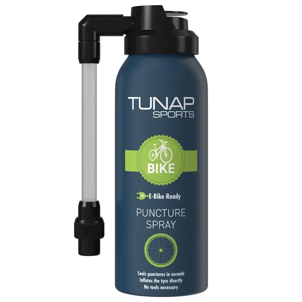 De Tunap Puncture Spray is in staat om kleine gaatjes in je band te dichten binnen enkele seconden. Er worden adapters meegeleverd voor auto-, Franse en Dunlopventielen. De spray is te zowel voor een binnenband als een tubeless setup geschikt. Wanneer je dus een lekke band hebt, kan je deze spray gebruiken om het gat te dichten en de band op te pompen tot 2-5 bar, afhankelijk van het type band.
