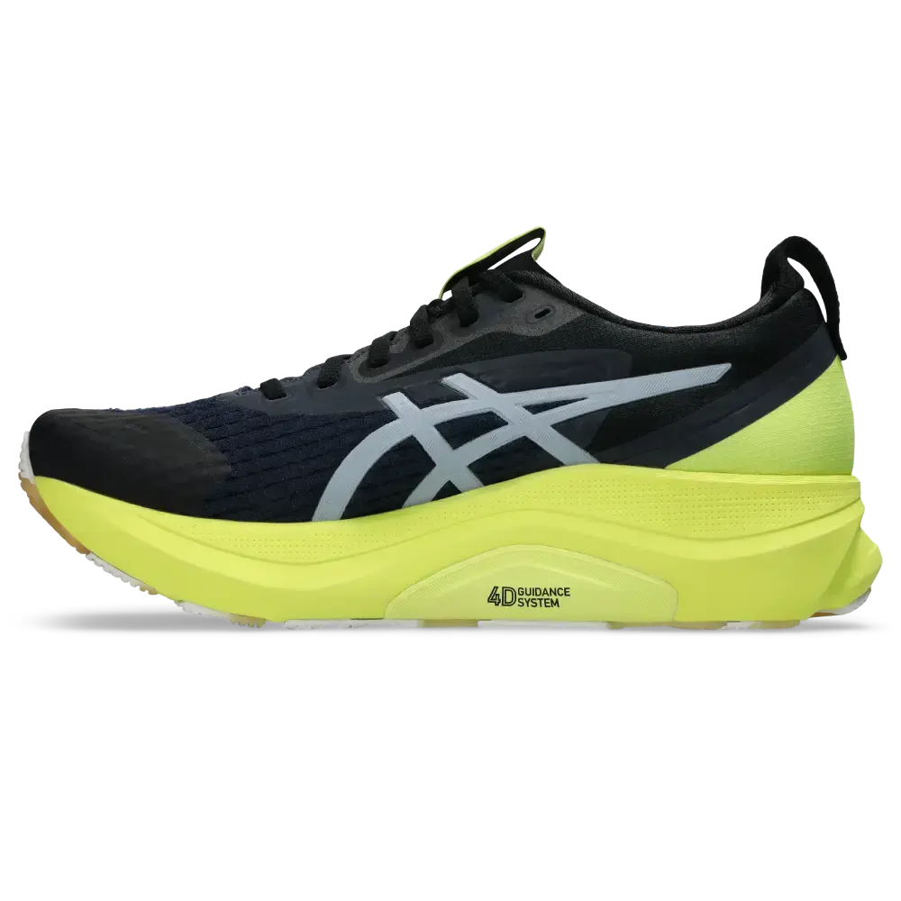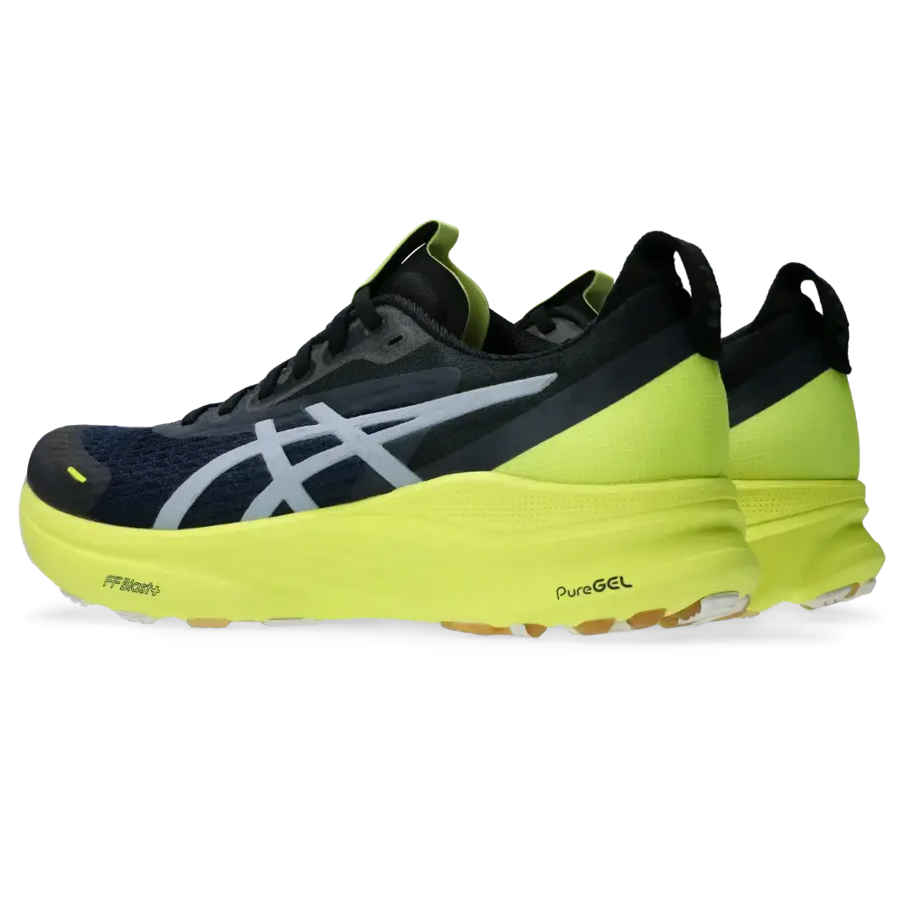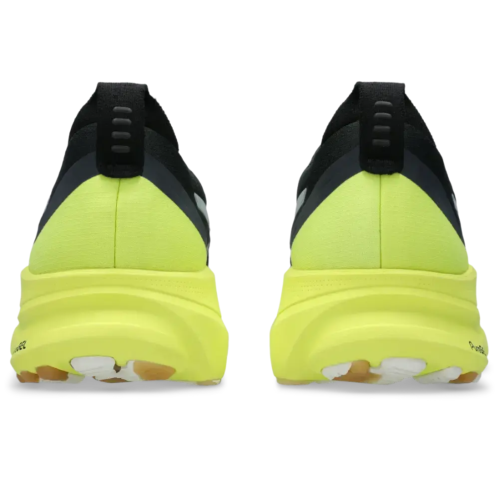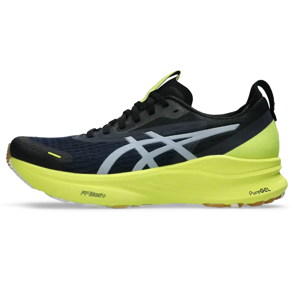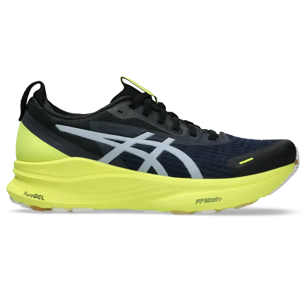 De ASICS Gel Kayano 32 hardloopschoenen zorgen voor een stabiele en gecontroleerde hardloopervaring bij elke stap. Hierdoor land je zachter, is je afwikkeling soepeler en voorkom je bovendien blessures. Net als de vorige generatie is de Gel Kayano gemaakt om voor een stabiele landing te zorgen, zeker als je langere afstanden loopt. De schoen heeft een uitstekende demping die wordt geleverd door Asics’ vernieuwde PureGEL technologie. Niet alleen verlaagt het de impact, het geeft ook een extra zacht gevoel en verhoogt zo het comfort. Wat hieraan bijdraagt is het gebruik van FF BLAST PLUS ECO schuim, die zowel voor demping als voor een optimale energieoverdracht zorgt. De gebreide kraagconstructie blijft behouden, waardoor je voet soepel in de schoen glijdt. Dankzij het lusje op de schoentong trek je de schoen ook makkelijk uit. Het bovenwerk is opnieuw ontworpen met een ademende en ondersteunende engineered mesh die bijdraagt aan koelere en comfortabelere runs. De HYBRID ASICSGRIP zool zorgt voor uitstekende grip en een zacht grondcontact. ASICS houdt rekening met het milieu door biologisch afbreekbaar foam, gerecycled mesh en een CO2-reducerend productieproces toe te passen. Deze lite-show variant is extra zichtbaar door reflecterende elementen en felle kleuren.