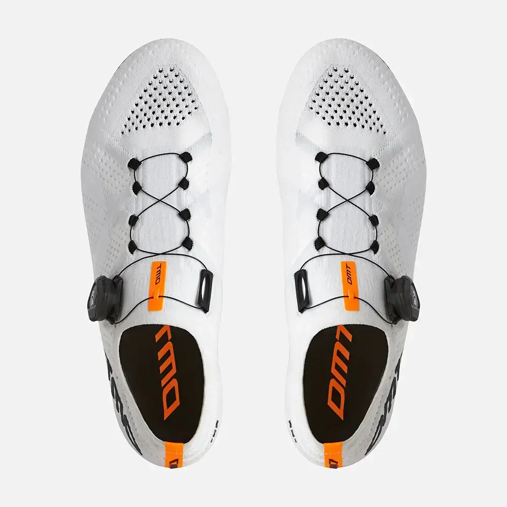 Deze DMT KR1 wielrenschoen is één van de topschoenen uit het assortiment van DMT. Deze hoogwaardige raceschoen doet eigenlijk geen concessies aan pasvorm of comfort. Het uit één stuk vervaardigde en naadloze gebreide bovenwerk zorgt voor een uitstekende ventilatie bij zware inspanning. De schoen heeft een BOA® Fit-systeem met een enkele IP1-draaiknop, zodat de schoen perfect om jouw voet heen past. De zool is gemaakt van een extreem lichtgewicht en stijf carbon. Dit maakt de schoenen uiteraard zeer licht, maar maakt ook de krachtoverbrenging naar de pedalen extreem goed. Voor een perfecte pasvorm en ongekende prestaties zijn deze schoenen ontwikkeld in samenwerking met Elia Viviani.