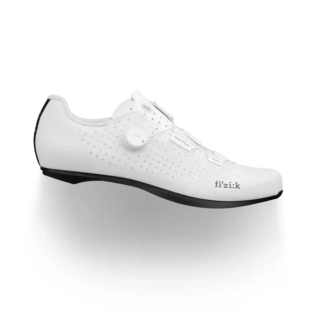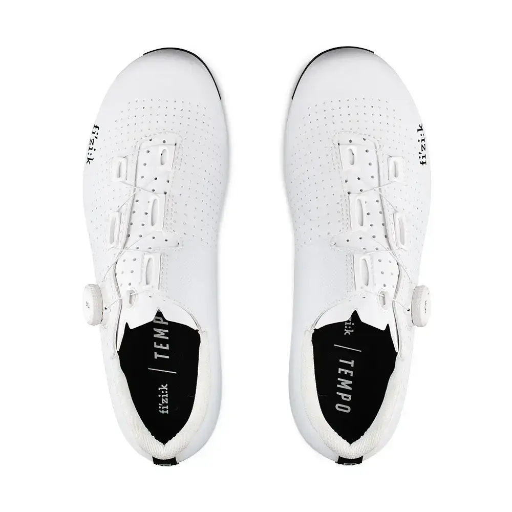 De Fizik Tempo Decos Carbon Wide wielerschoenen zijn ontworpen om het midden de vinden tussen comfort, prestaties en essentie. De minimale enkele Boa-sluiting en de stijve carbonzool dragen bij aan die eigenschappen. Je voeten blijven optimale geventileerd door het PU-gelamineerde materiaal met mesh aan de bovenzijde. De niet alleen stijve, maar ook lichtgewicht R2 carbon buitenzool zorgt voor efficiënte krachtoverdracht naar de pedalen. Een brede ventilatieopening en diepe interne kanalen zorgen voor een verkoelende luchtstroom voor een betere temperatuurregeling. De schoenplaatbevestiging is iets verder naar achter geplaatst dan traditioneel gedaan wordt. Dit resulteert in een geoptimaliseerde trapefficiëntie en verminderde druk op de knieën. Met name aero-gerichte rijders hebben hier voordeel aan.