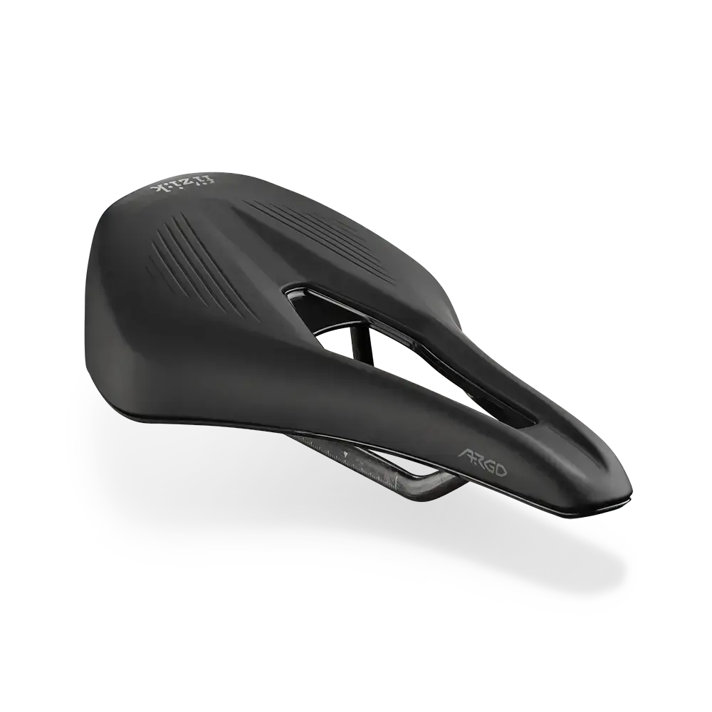 Dit Fizik Vento Argo R1 Zadel is ontworpen voor de prestatie gerichte wielrenner. Het zadel heeft namelijk een korte neus. Waardoor je meer naar voren in een aerodynamische fietshouding komt te zitten. Ideaal wanneer elke seconde telt. Daarnaast heeft het zadel een uitsparing, welke de druk van de zachte delen van het zitvlak weghaalt en zo de kans op zadelpijn tijdens lange fietstochten verminderd. Door de typische Argo-vorm (S-vorm) word je in de goede positie op het zadel gezet, ideaal voor minder flexibele renners. Hierdoor kun je makkelijker je bekken kantelen en beter diep zitten. Je profiteert daardoor van een lagere luchtweerstand en er wordt een meer efficiëntere pedaalslag gecreëerd. Naast de vele voordelen van het korte ontwerp biedt dit zadel ook een zeer stijve carbon versterkte schaal en carbon rails. Dit vermindert vervorming van het zadel en zo vloeit er meer energie over naar de pedalen, daar waar het moet komen! Ook houdt dit het gewicht laag. Het Type 1 schuim is dun en toch zeer reactief, welke ook helpt bij de krachtoverbrenging op de pedalen. Kortom, met dit zadel haal je alles in huis wat je nodig hebt om er iedere rit vol voor te kunnen gaan! Maak bij je zadelkeuze de keuze uit de Large (150mm breed) of Regular (140mm breed) versie.