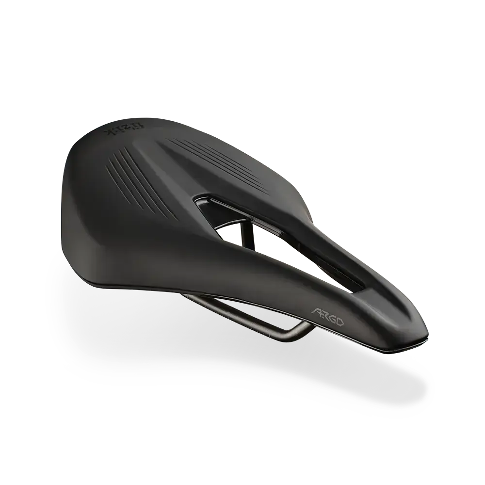 Dit Fizik Vento Argo R3 Zadel is ontworpen voor de prestatie gerichte wielrenner, Het zadel heeft namelijk een korte neus, Waardoor je meer naar voren in een aerodynamische fietshouding komt te zitten, Ideaal wanneer elke seconde telt, Daarnaast heeft het zadel een uitsparing, welke de druk van de zachte delen van het zitvlak weghaalt en zo de kans op zadelpijn tijdens lange fietstochten verminderd, Door de typische Argo-vorm (S-vorm) word je in de goede positie op het zadel gezet, ideaal voor minder flexibele renners, Hierdoor kun je makkelijker je bekken kantelen en beter diep zitten, Je profiteert daardoor van een lagere luchtweerstand en er wordt een meer efficiëntere pedaalslag gecreëerd, Naast de vele voordelen van het korte ontwerp biedt dit zadel ook een zeer stijve carbon versterkte schaal en Kium rails, Kium is lichter dan standaard titanium en is door Fizik zelf ontworpen, Deze combinatie van carbon versterkt Nylon en deze rail zorgt voor een licht en tegelijkertijd stijf geheel, Het Type 1 schuim is dun en toch zeer reactief, welke ook helpt bij de krachtoverbrenging op de pedalen, Kortom, met dit zadel haal je alles in huis wat je nodig hebt om er iedere rit vol voor te kunnen gaan! Maak bij je zadelkeuze de keuze uit de Large (150mm breed) of Regular (140mm breed) versie,