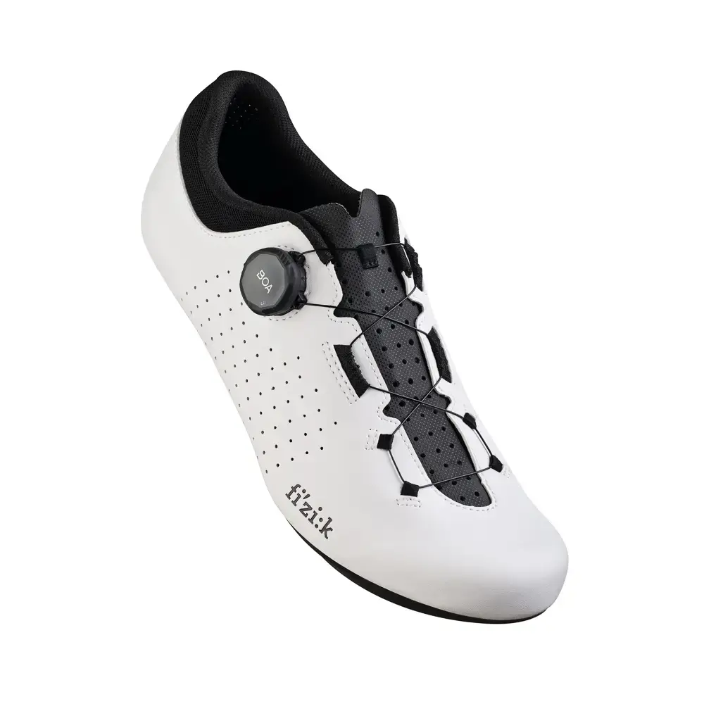 De Fizik Vento Omna R5 Single Boa Wielrenschoenen zorgen ervoor dat je comfortabeler kunt presteren. De schoenen hebben een gemiddeld stijfheidsniveau, wat ervoor zorgt dat de krachtsoverdracht en het comfort perfect met elkaar in balans zijn. De positie voor het bevestigen van de klikpedalen is iets verder naar achteren gezet vergeleken met eerdere schoenen, waardoor knieklachten minder snel voor zullen komen. Wijde luchtgaten in de zool zorgen voor optimale verkoeling tijdens de rit. De schoen is voorzien van de populaire BOA-sluiting, waarbij met een simpele draai de schoenwanden strakker om je voet worden getrokken. De Fizik Vento Omna is er voor iedereen met een racefiets die prestatie niet ten koste wil laten gaan van comfort.