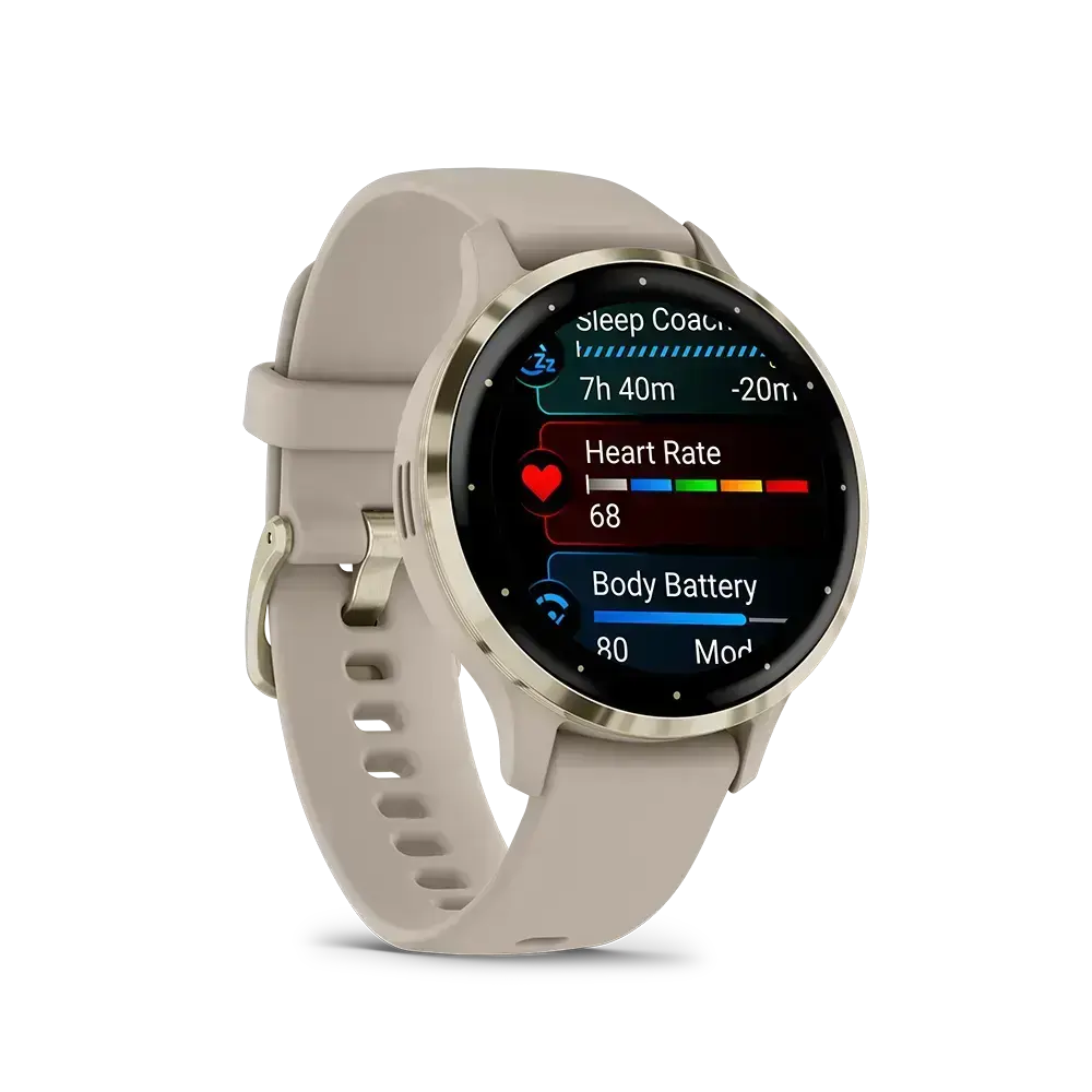 Deze Garmin Venu 3s toont alles in prachtige scherpe kleuren dankzij het AMOLED scherm