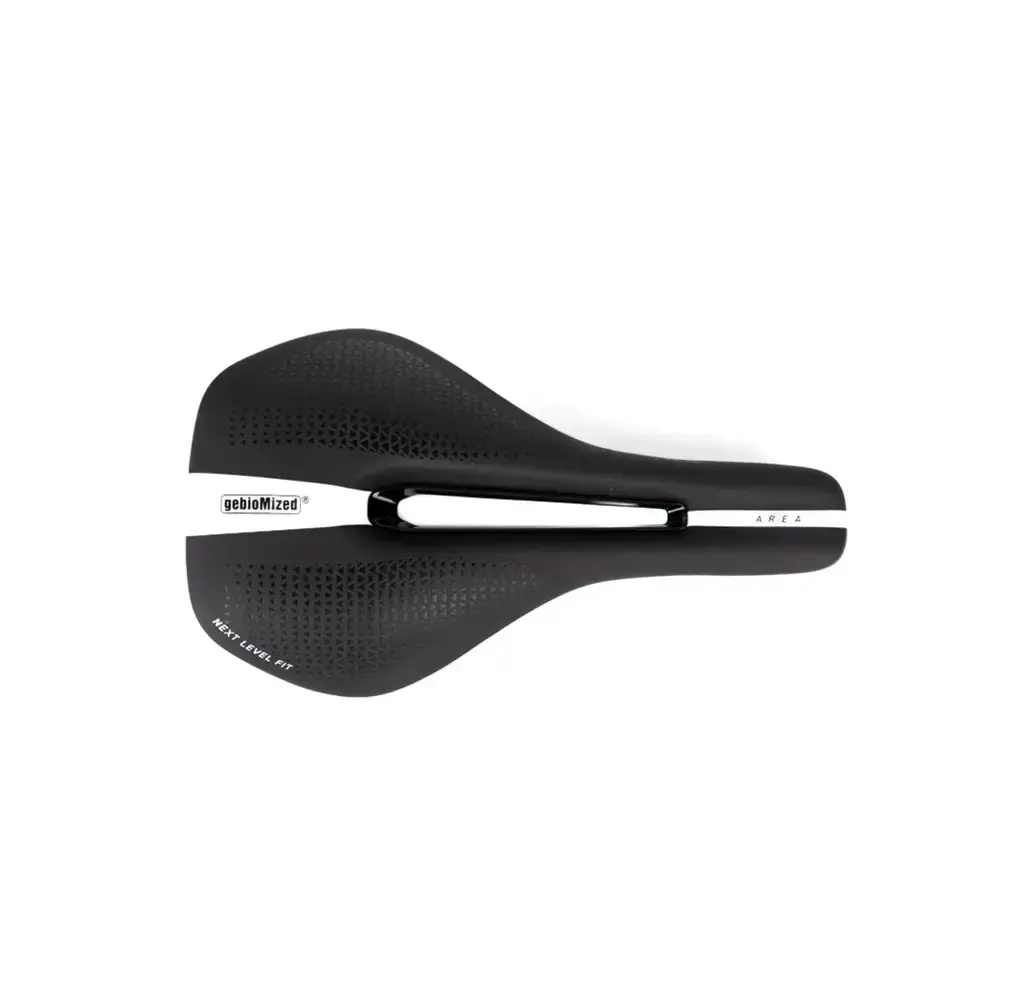 Het gebioMized Area Fietszadel is ontwikkeld voor fietsers die op zoek zijn naar een grote contactoppervlakte voor meer comfort tijdens lange ritten zoals een Granfondo of een ontspannen fietstocht. De gebioMized Area biedt de perfecte balans voor fietsers met goede flexibiliteit, dankzij het gebogen ontwerp dat zich aanpast aan de anatomie van de rijder. Deze Normal versie is wat steviger dan de soft variant. Ook is dit de Cut out variant wat betekent dat er een volledig kanaal in het midden zit plaats van slechts een verlaging. Dit verlaagt de belasting voor het perineale gebied, voor minder kans op zadelpijn. Ook biedt deze een kleiner contactoppervlak dan de Channel versie. De V-Shape is voor fietsers die voornamelijk druk uitoefenen op het schaambeen.