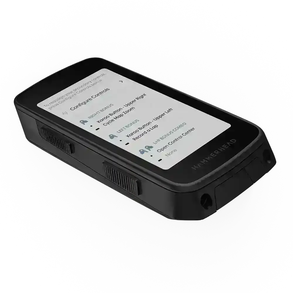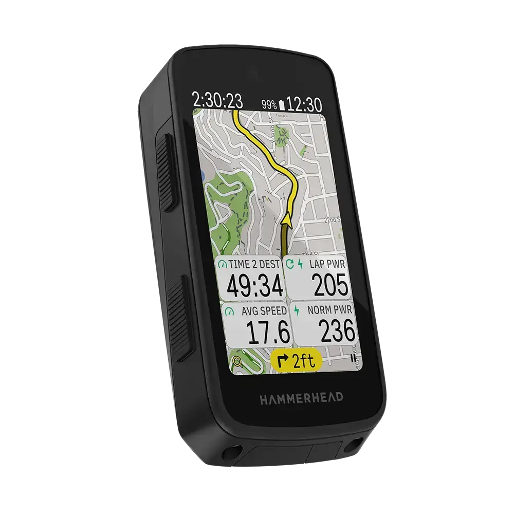 Waar de HammerHead echt uniek wordt, is de koppeling van SRAM AXS-producten tot e-bikes en ANT+ lampen. Als je elektronisch schakelt met een SRAM groepset, kun je die groep koppelen met de fietscomputer. Zo kun je de computer bijvoorbeeld ook bedienen via je shifters. De bediening is sowieso heel eenvoudig. De Karoo is namelijk voorzien van een smartphone-achtig scherm met toonaangevend display. Het scherm is goed te bedienen in alle omstandigheden, maar ook via de knoppen op de zijkant van het toestel.