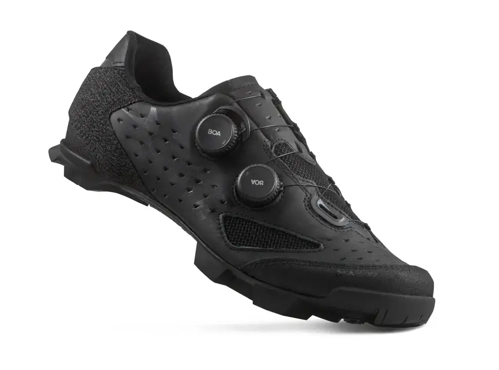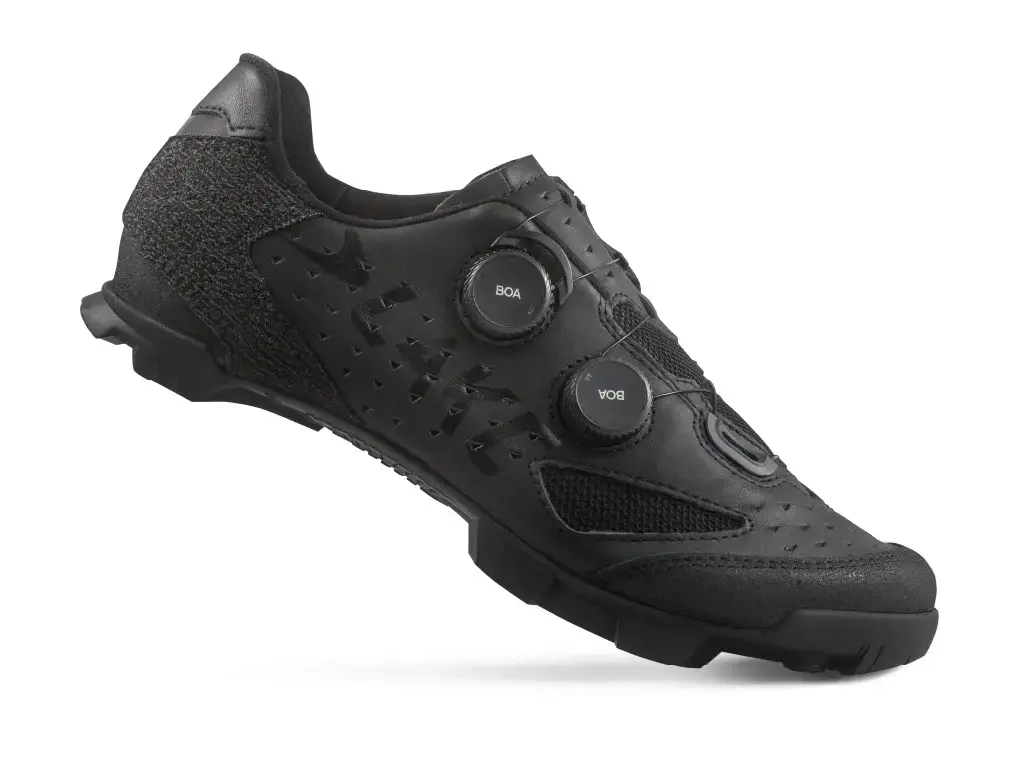 Deze Lake MX238 Mountainbikeschoenen zijn zeer hoogwaardige MTB schoenen voor zeer gedreven mountainbikers. Door de zeer stijve carbon zool wordt al je kracht direct op de pedalen gebracht. Het slanke ontwerp sluit nauw om je voeten aan om beweging in de schoen tot een minimum te beperken. Maar biedt wel voldoende ruimte om afknelling te voorkomen tijdens stukken waar je even moet rennen in een wedstrijd. Als aanvulling beschikken de schoenen over twee BOA sluitingen welke zeer precies af te stellen zijn. Hierdoor zal je altijd de perfecte pasvorm vinden. Om te zorgen dat je geen té warme voeten krijgt, zijn er perforaties in het bovenwerk aangebracht en extra mesh stukken toegevoegd. Daarnaast helpt de voering met het snel afvoeren van hitte en vocht. Het bovenwerk is gemaakt van slijtvast en waterafstotend leder met extra Aramide stukken op de meest blootgestelde delen zoals de hiel. De rubberen onderzool biedt veel grip in modderige omstandigheden, ideaal tijdens een wedstrijd waarbij je ook af en toe van de fiets af moet.