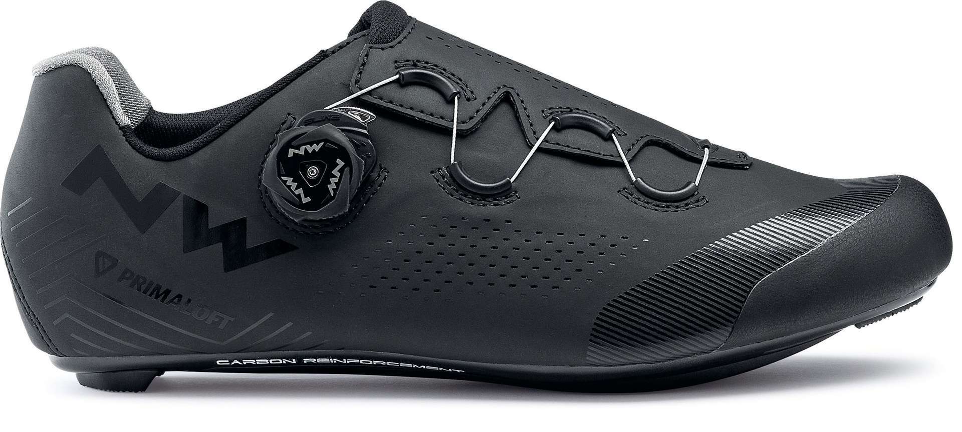 De Northwave Magma R Rock Wielrenschoenen zijn ideaal om mee te fietsen in milde winterse omstandigheden. Het primaloft materiaal zorgt voor isolatie en een uitstekend ademend vermogen. In combinatie met het vier lagen dikke Arctic GTX voetbed en de isolerende voorvoet zorgt dit voor gegarandeerd warme voeten. De zool is versterkt met carbon en heeft een stijfheidsindex van 8.0 waardoor je al je kracht goed op de pedalen kan overbrengen. Het SLW2 dial vetersysteem is zeer precies af te stellen tot de perfecte pasvorm en met één beweging los te maken. Of juist beetje bij beetje te openen, om zo de perfecte pasvorm te vinden. Verder hebben de schoenen rondom reflecterende details en een verstevigde neus voor 360 graden zichtbaarheid en meer duurzaamheid.