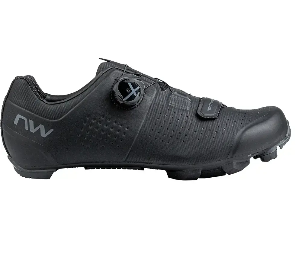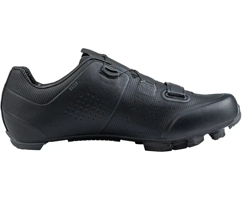 De Northwave Razer Mountainbikeschoenen voor heren zijn perfect voor de veeleisende fietser. Deze schoenen hebben een stugge bovenzijde die mooi om je voeten aan te passen is met het boa systeem met asymmetrisch vetersysteem. De bovenzijde is voorzien van TPU delen die je voeten optimaal beschermen. De onderzool van deze schoenen is ook erg stug, hierdoor gaat er weinig kracht verloren bij het trappen. De zool is voorzien van grote noppen die voor een goede grip zorgen als je even niet in de pedalen zit.