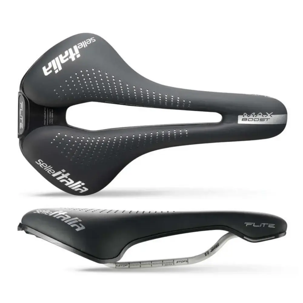 Het Selle Italia MAX FLITE Boost Gel TI 316 Superflow Zadel combineert klassieke looks met moderne technieken. Het zadel ziet er vrij vlak uit, maar biedt veel comfort en prestaties voor iedere racefietser. Dankzij de relatief korte lengte van het zadel, kun je makkelijk diep gaan zitten voor een aerodynamische houding op de fiets. In combinatie met de lichtgewicht titanium zadelrails biedt het zadel naast prestaties dus ook heel veel comfort in een lichtgewicht pakket. De breedte, ID-Match L3, geeft je tijdens je rit maximaal comfort en ondersteuning in elke situatie. Het zitvlak is nog steeds van Fibra-Tek: licht, duurzaam en sterk microvezelmateriaal.