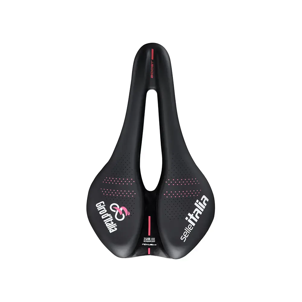 Het Selle Italia NOVUS Boost EVO TM Superflow Giro L3 Zadel is één van de meest populaire modellen in de geschiedenis van Selle Italia. Daarom is hij nu ook te krijgen in een speciale Giro d’Italia-editie! Het zadel is gemaakt met puur comfort in het achterhoofd. De Novus Boost Evo TM Superflow is dan ook ideaal voor epische ritten door de meest uitdagende landschappen. Dit zadel is lichtgewicht en comfortabel dankzij de golf in het profiel. Dit doorontwikkelde ontwerp ondersteunt je zitbeenderen tijdens lange ritten en de Superflow-uitsparing vermindert de druk op het perineum. De rails van mangaan en de korte neus verbeteren de ergonomie, wendbaarheid, comfort en prestaties op de pedalen. Het zadeldek is nog steeds van Soft-Tek: licht, duurzaam en sterk materiaal.