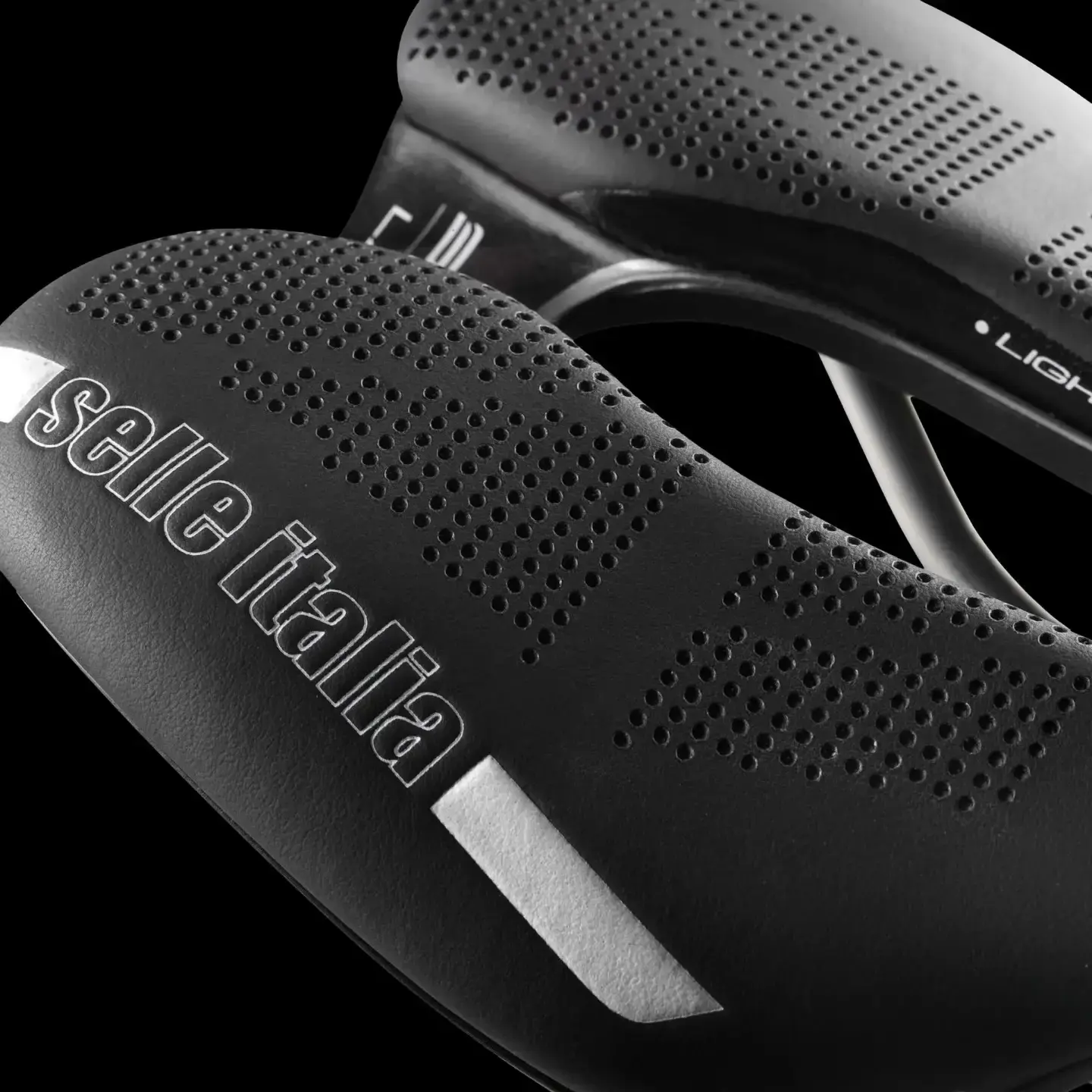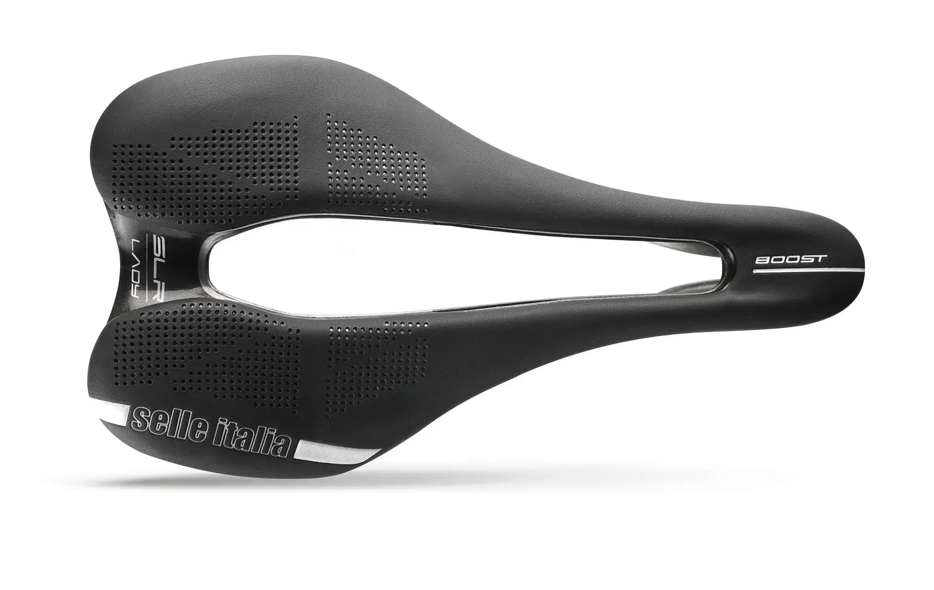 Het Selle Italia SLR SuperFlow Boost L Zadel is gemaakt voor fanatieke dames die alles uit hun fietsritten willen halen. Met dit zadel wordt het uitrijden van een Gran Fondo een stuk comfortabeler! Dit zadel is gevuld met een Light-Gel laag, wat het zitcomfort ten goede komt. Dit zadel is uitvoerig getest door wielrensters, met een voor dames geoptimaliseerde vorm als eindresultaat. Het Fibra-tek coating voelt niet alleen goed aan, maar is ook zeer duurzaam en sterk. De SuperFlow uitsparing in het midden zorgt voor een drukverlichting, waardoor je ook comfortabel onderin de beugels kunt blijven koersen. Het is een misverstand dat alleen mannen hier baat bij hebben: ook voor dames is dit een enorme verbetering ten opzichte van een klassiek “gesloten” zadel. Dit zadel behoort tot de L3-categorie.