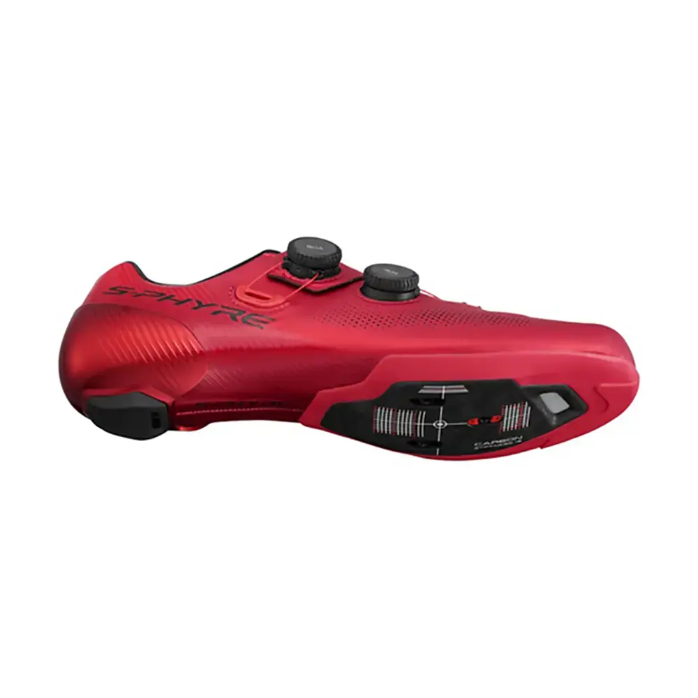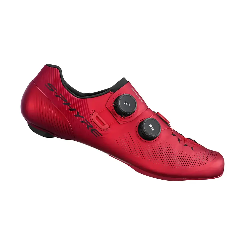 De Shimano S-PHYRE RC903 Wielrenschoenen zijn ontworpen voor het rijden van wegwedstrijden. Deze hoogwaardige schoenen zijn voorzien van een 360 graden surround wrap-bovenwerk voor een optimale pasvorm. Ook dankzij de BOA Li2 sluiting sluiten de schoenen perfect aan om je voeten. Dit BOA systeem is geoptimaliseerd voor de flexibiliteit en het comfort van de schoen. De hielcup met anti-twist stabilisatie zorgt voor een optimale voetpositionering voor intense acceleratie en hoge cadans. De met carbon versterkte tussenzool helpt de voet te stabiliseren en zorgt voor een super goede krachtoverdracht en efficiëntie. De RC903 is nóg lichter dan zijn voorganger!