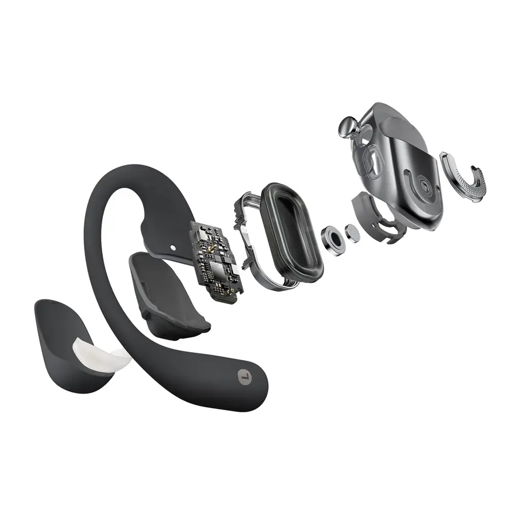 Wat maakt de OpenFit 2+ uniek ten opzichte van de gewone OpenFit 2? Deze variant ondersteunt draadloos opladen via Qi-laders én beschikt over Dolby Audio voor een nog meeslependere ervaring. De accuduur is gelijk gebleven: tot 11 uur op één lading en 48 uur in totaal met de case. De verbeterde pasvorm met nikkel-titanium geheugenmetaal en een zachte siliconen toplaag zorgt voor langdurig draagcomfort, zowel tijdens het sporten als thuis of op het werk. Met AI-aangedreven ruisonderdrukking via vier microfoons ben je bovendien altijd duidelijk verstaanbaar, waar je ook bent.
