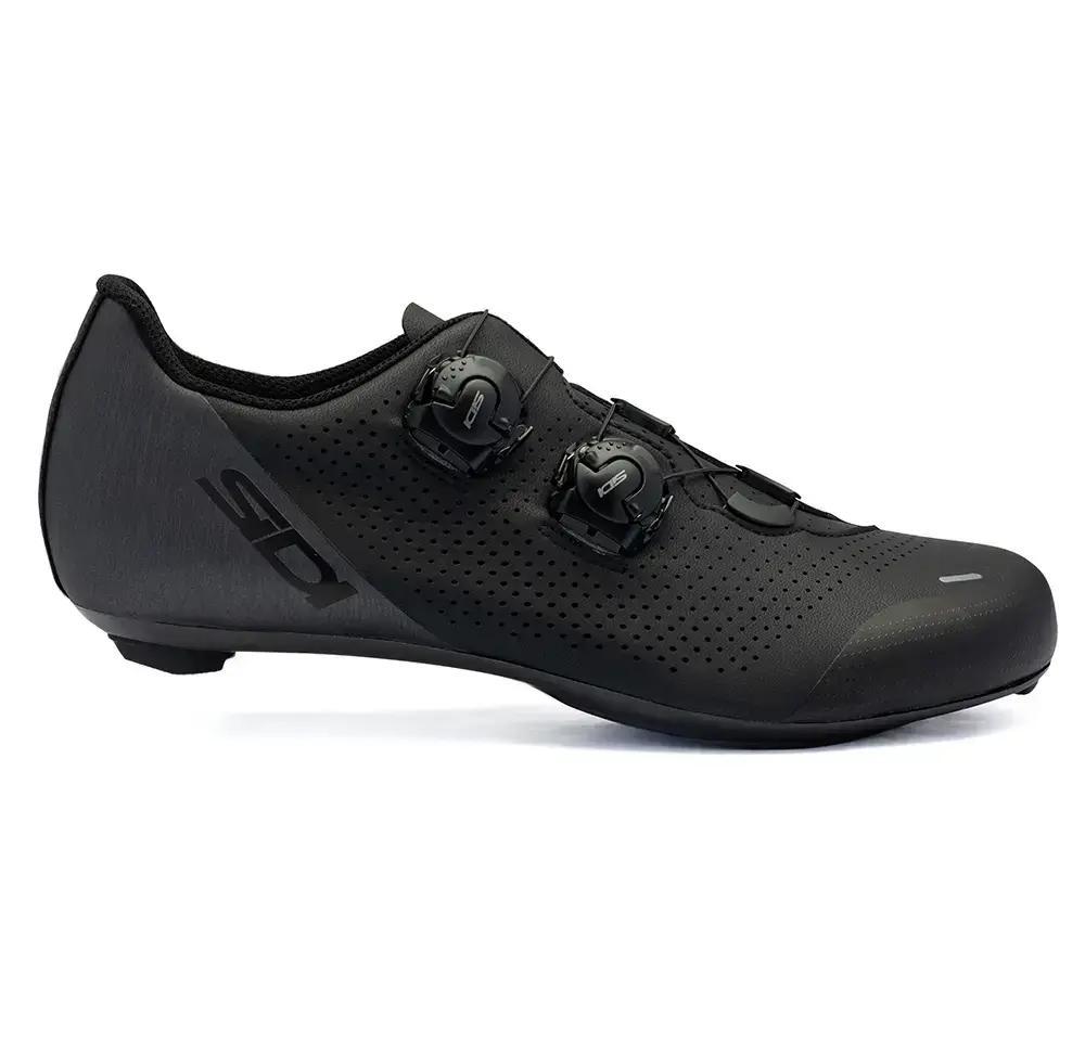 De Sidi Ergo 6 wielrenschoenen zijn de ultieme keuze voor iedere wielrenner die het maximale uit zichzelf en zijn materiaal wil halen. Het microvezel bovenwerk biedt uitstekende ademende eigenschappen, zodat je voeten zelfs tijdens intensieve ritten fris blijven. Dankzij de anatomische tong ervaar je een ongeëvenaarde pasvorm die zich perfect aanpast aan de vorm van je voet. Het dubbele draaibare sluitsysteem stelt je in staat om de pasvorm tot in detail af te stellen voor maximaal comfort en optimale ondersteuning. Deze wielrenschoenen zijn voorzien van een stijve R2FC Carbon zool met een stijfheidsindex van 11/12, wat zorgt voor een ongekende krachtoverbrenging bij iedere pedaalslag. De zool is ontworpen om stabiliteit te bieden en tegelijkertijd een breed scala aan aanpassingsmogelijkheden te bieden voor je schoenplaatjes, dankzij de 75mm connectiesecties. Dit maakt het eenvoudig om de perfecte positie te vinden, wat cruciaal is voor zowel comfort als prestatie. Met een gewicht van slechts 278 gram zijn de Ergo 6 schoenen licht, terwijl ze dankzij het 1,2 mm dikke high-tech microvezelmateriaal duurzaam en slijtvast blijven. Door de Firmor Lateral technologie wordt je voet gestabiliseerd, zelfs tijdens de meest intensieve prestaties, zodat je volledig in controle blijft. De ergonomische vorm van het bovenwerk zorgt bovendien voor een premium comfortgevoel, waardoor je deze schoenen moeiteloos urenlang kunt dragen.