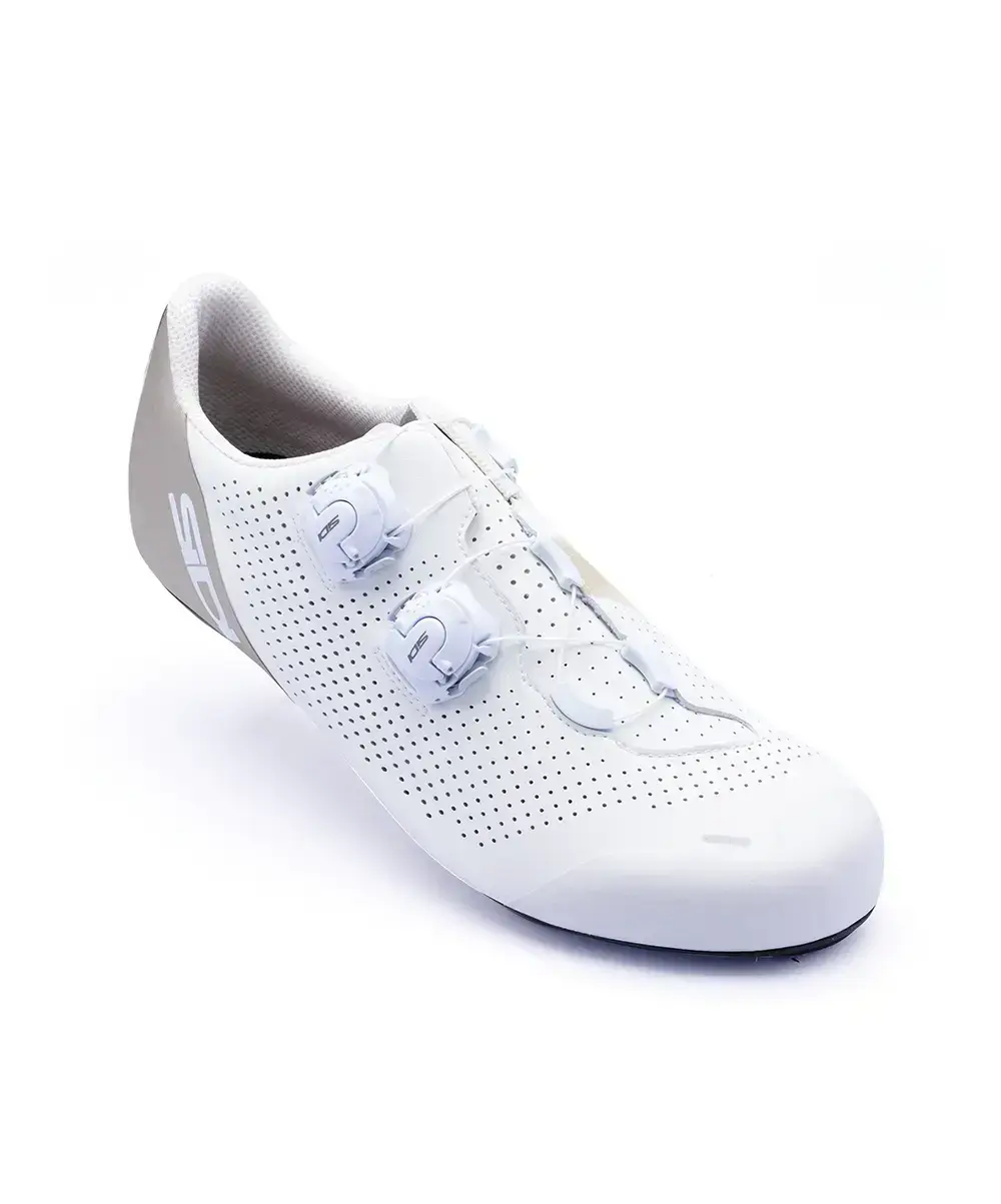 De Sidi Ergo 6 wielrenschoenen zijn de ultieme keuze voor iedere wielrenner die het maximale uit zichzelf en zijn materiaal wil halen. Het microvezel bovenwerk biedt uitstekende ademende eigenschappen, zodat je voeten zelfs tijdens intensieve ritten fris blijven. Dankzij de anatomische tong ervaar je een ongeëvenaarde pasvorm die zich perfect aanpast aan de vorm van je voet. Het dubbele draaibare sluitsysteem stelt je in staat om de pasvorm tot in detail af te stellen voor maximaal comfort en optimale ondersteuning. Deze wielrenschoenen zijn voorzien van een stijve R2FC Carbon zool met een stijfheidsindex van 11/12, wat zorgt voor een ongekende krachtoverbrenging bij iedere pedaalslag. De zool is ontworpen om stabiliteit te bieden en tegelijkertijd een breed scala aan aanpassingsmogelijkheden te bieden voor je schoenplaatjes, dankzij de 75mm connectiesecties. Dit maakt het eenvoudig om de perfecte positie te vinden, wat cruciaal is voor zowel comfort als prestatie. Met een gewicht van slechts 278 gram zijn de Ergo 6 schoenen licht, terwijl ze dankzij het 1,2 mm dikke high-tech microvezelmateriaal duurzaam en slijtvast blijven. Door de Firmor Lateral technologie wordt je voet gestabiliseerd, zelfs tijdens de meest intensieve prestaties, zodat je volledig in controle blijft. De ergonomische vorm van het bovenwerk zorgt bovendien voor een premium comfortgevoel, waardoor je deze schoenen moeiteloos urenlang kunt dragen.