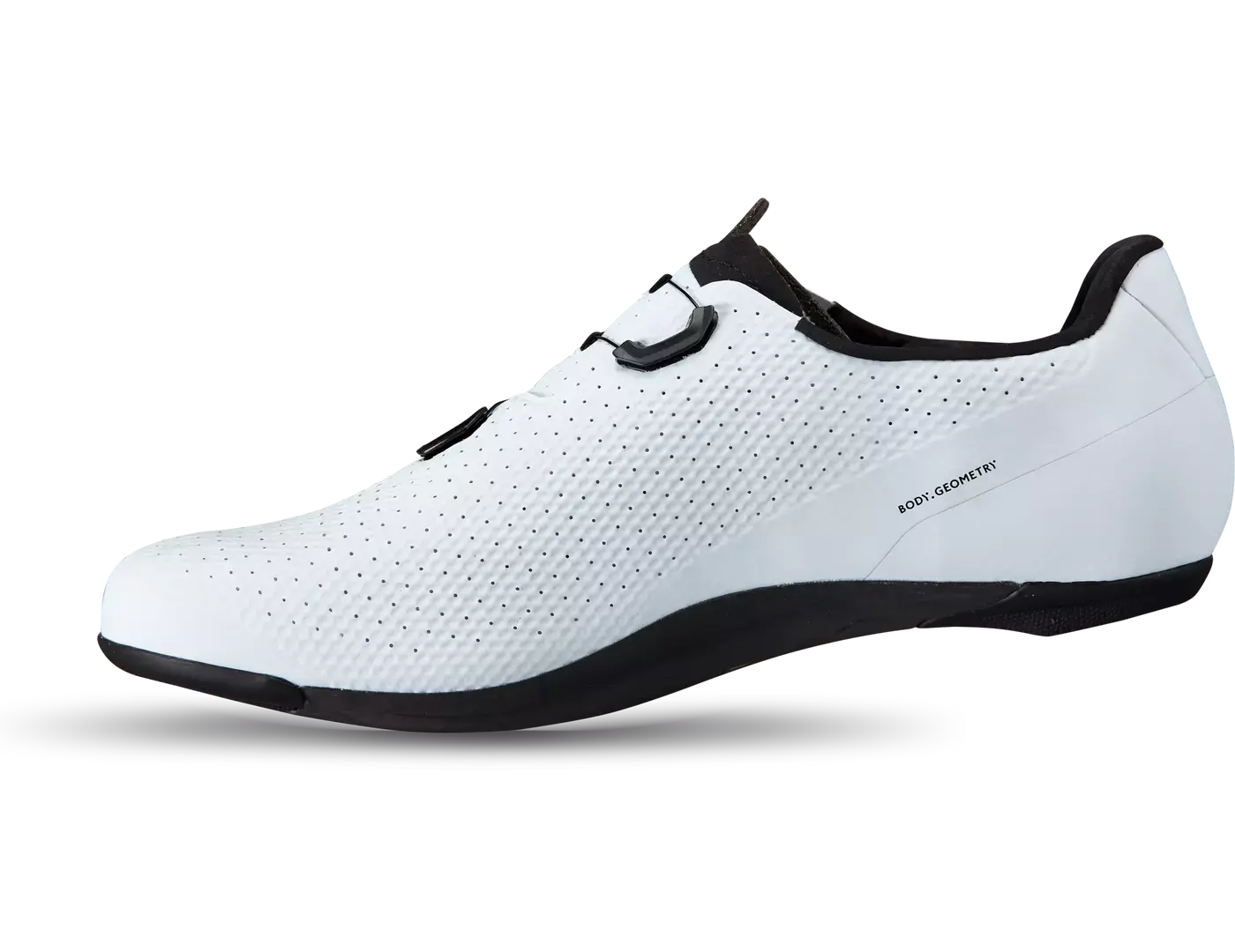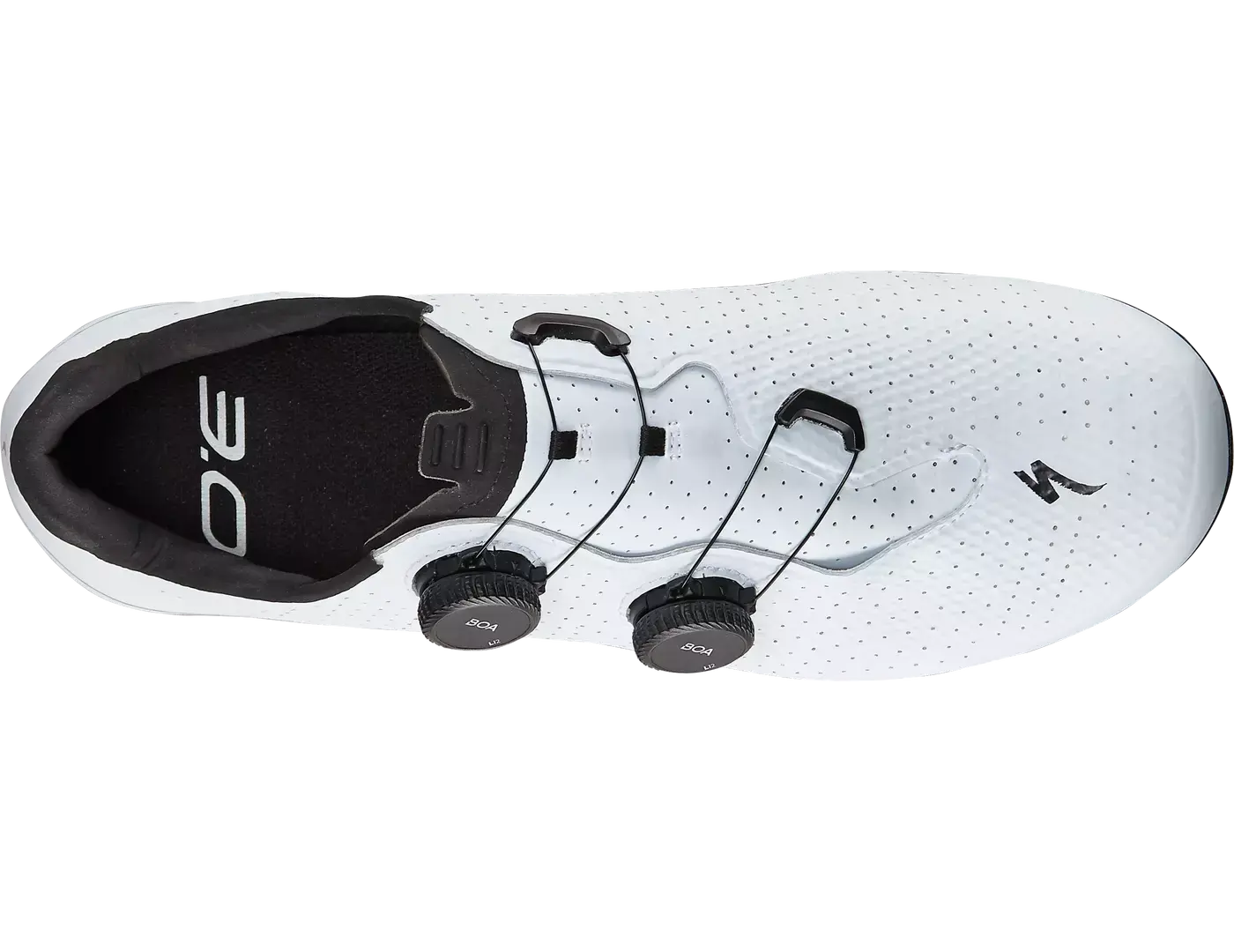 Dat weten de Torch 3.0 schoenen te voorkomen door gebruik te maken van een 100% mesh en TPU constructie. Daardoor valt de schoen als een sok om je voeten heen en bieden ze meer ruimte voor de tenen. Tevens hebben deze schoenen een regular fit wat ze voor vrijwel iedere voet geschikt maakt. De schoenen zijn voorzien van 2 BOA Li2 sluitingen waarmee je de pasvorm zeer eenvoudig en toch precies afstelt. Daarnaast kijkt Specialized naar lichaamsgeometrie om een optimale uitlijning van de voet, knie en enkel te krijgen. De stijve full Carbon zool zorgt voor een zeer efficiënte, maar comfortabele overbrenging van kracht op de pedalen.