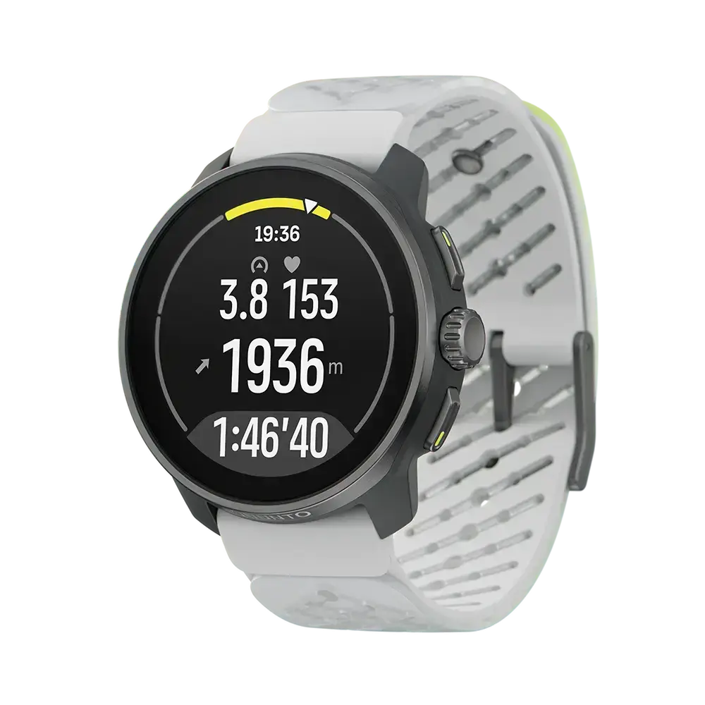 Verschil ten opzichte van 9 Peak ProDe Suunto Race-S is nog wat geavanceerder dan het eerdere top-end horloge van Suunto. Het Race-model beschikt over een Amoled display, wat een hogere helderheid en resolutie (466x466 tegenover 280x280) mogelijk maakt. Er is verder een zogenaamde kroon-knop aan de zijkant toegevoegd, zoals je misschien wel kent van analoge horloges. Deze functioneert als een digitale knop en is vooral een leuk design-element. Tenslotte heeft de Race ook beschikking over gratis offline kaarten, zodat je meteen vanaf de aankoop kunt beginnen met navigeren.