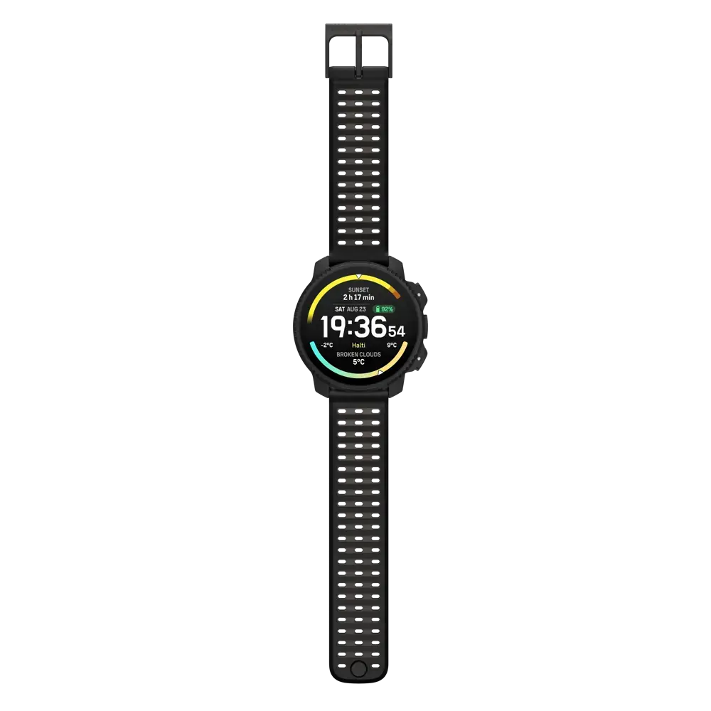 Hoogtemeting, weersverwachting en kompasSuunto zou Suunto niet zijn als ze er geen outdoor functies in hadden gestopt. Zo laat dit horloge zien wat voor weer het wordt, wanneer de zon opkomt en weer ondergaat, biedt het een zeer nauwkeurige hoogtemeting en heeft het een accuraat kompas. Daarnaast ondersteunt het horloge GPS, GLONASS, GALILEO en BEIDOU waardoor je altijd toegang hebt tot navigatie en je nooit de weg kwijt bent.