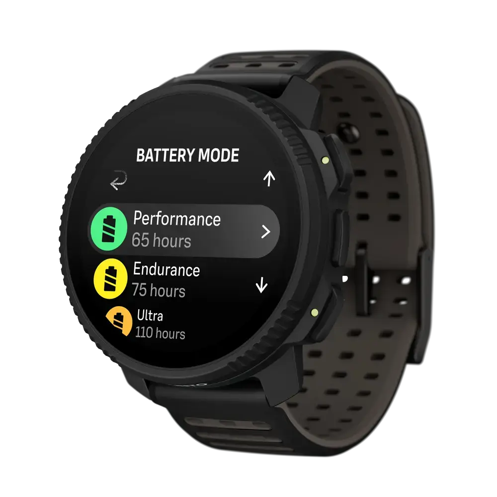 Supersterke batterijDe batterij van de Suunto Vertical 2 is misschien wel de beste op de markt op dit moment. De batterij is namelijk voorzien van een aantal handige standen. Wanneer het horloge alleen gebruikt wordt voor de tijd, gaat het horloge tot 20 dagen mee zonder tussendoor laden. Zodra het horloge overschakelt op de trainingsmodus, gelden er verschillende tijden van duur. Zo gaat het horloge 65 uur mee in de beste GPS-modus.