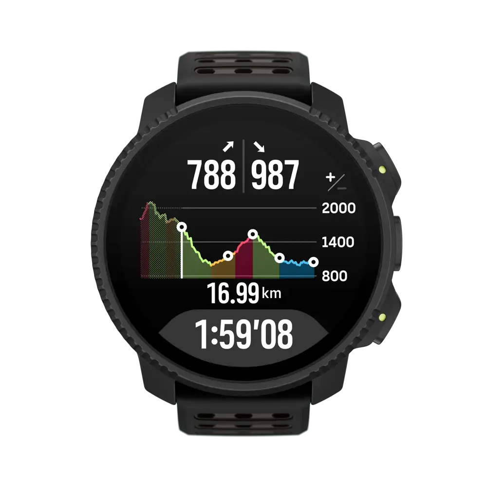 NavigatieNaast de sterke batterij heeft de Suunto nog veel meer hoogwaardige eigenschappen. Zo is het horloge uitgerust met route-, POI- en hoogtenavigatie (op basis van GPS) en restafstand. Ook de zonsopkomst- en zonsondergangstijden zijn te checken op dit horloge.