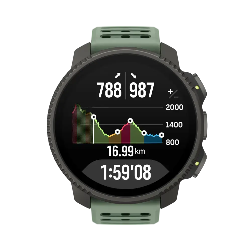 NavigatieNaast de sterke batterij heeft de Suunto nog veel meer hoogwaardige eigenschappen. Zo is het horloge uitgerust met route-, POI- en hoogtenavigatie (op basis van GPS) en restafstand. Ook de zonsopkomst- en zonsondergangstijden zijn te checken op dit horloge.