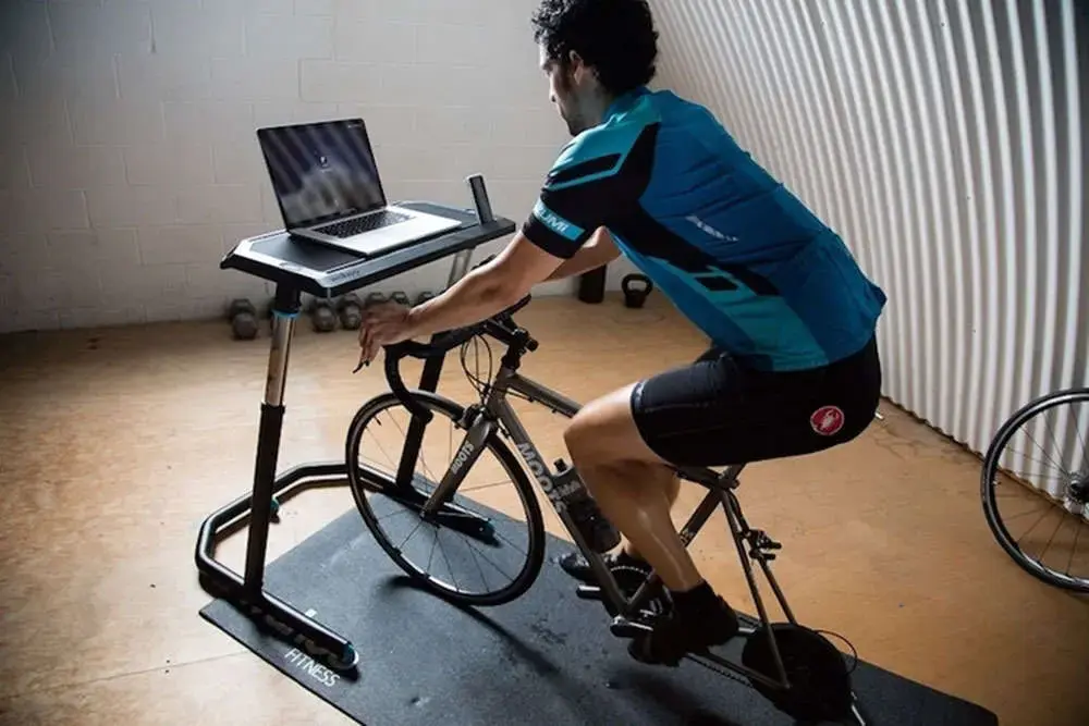 De volledig instelbare Fitness Desk van Wahoo is een bureau geschikt voor multitasking. Perfect te gebruiken met een KICKR of als staand bureau met een laptop. Hij is op iedere gebruiker voor iedere situatie aan te passen en snel te wisselen, mede dankzij de wieltjes. De Desk is voorzien van een ingebouwde tablet en smartphone houder en kabel openingen voor het netjes verwerken van kabels. Het frame is duurzaam en stabiel en staat op pootjes die de vloer niet beschadigen!